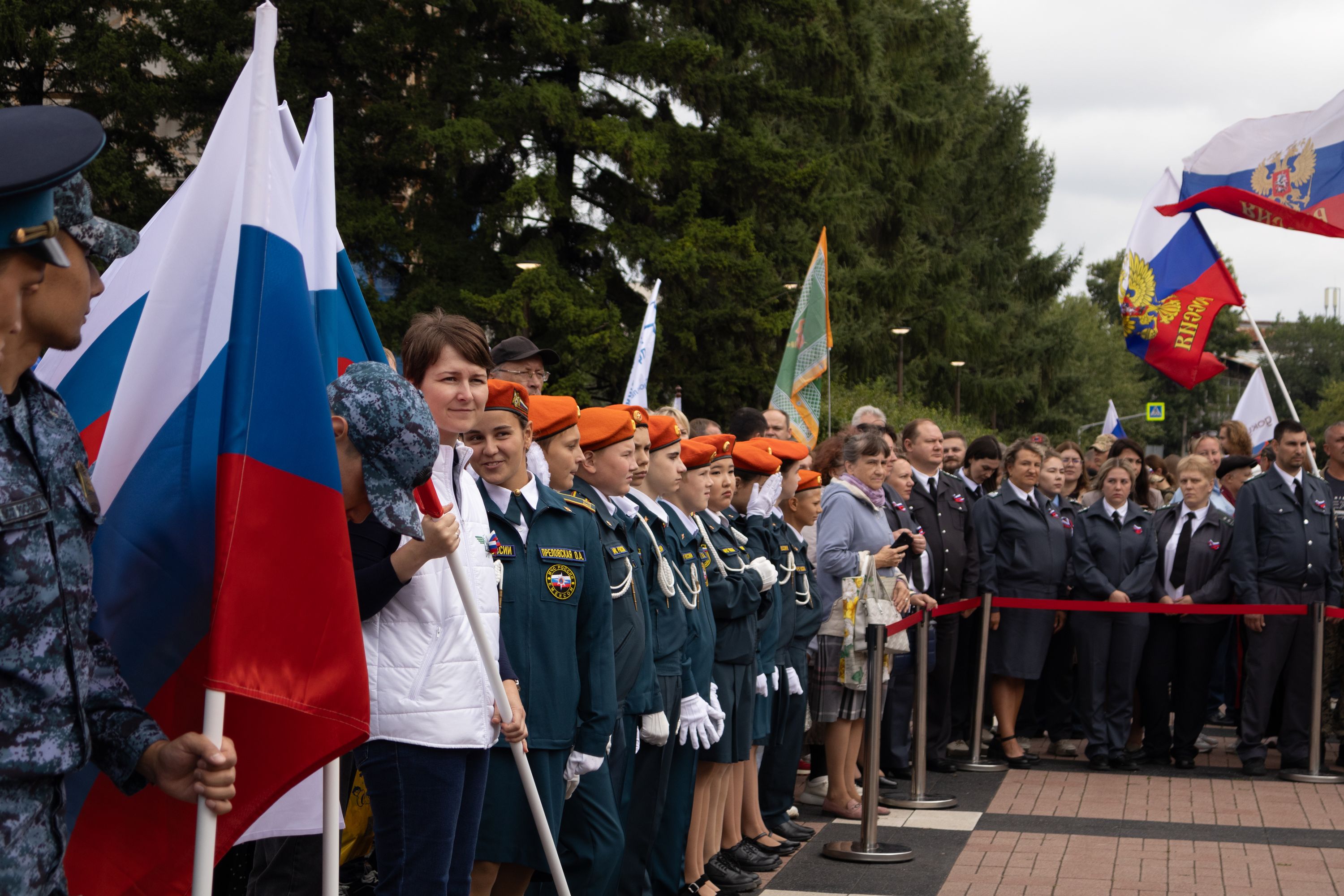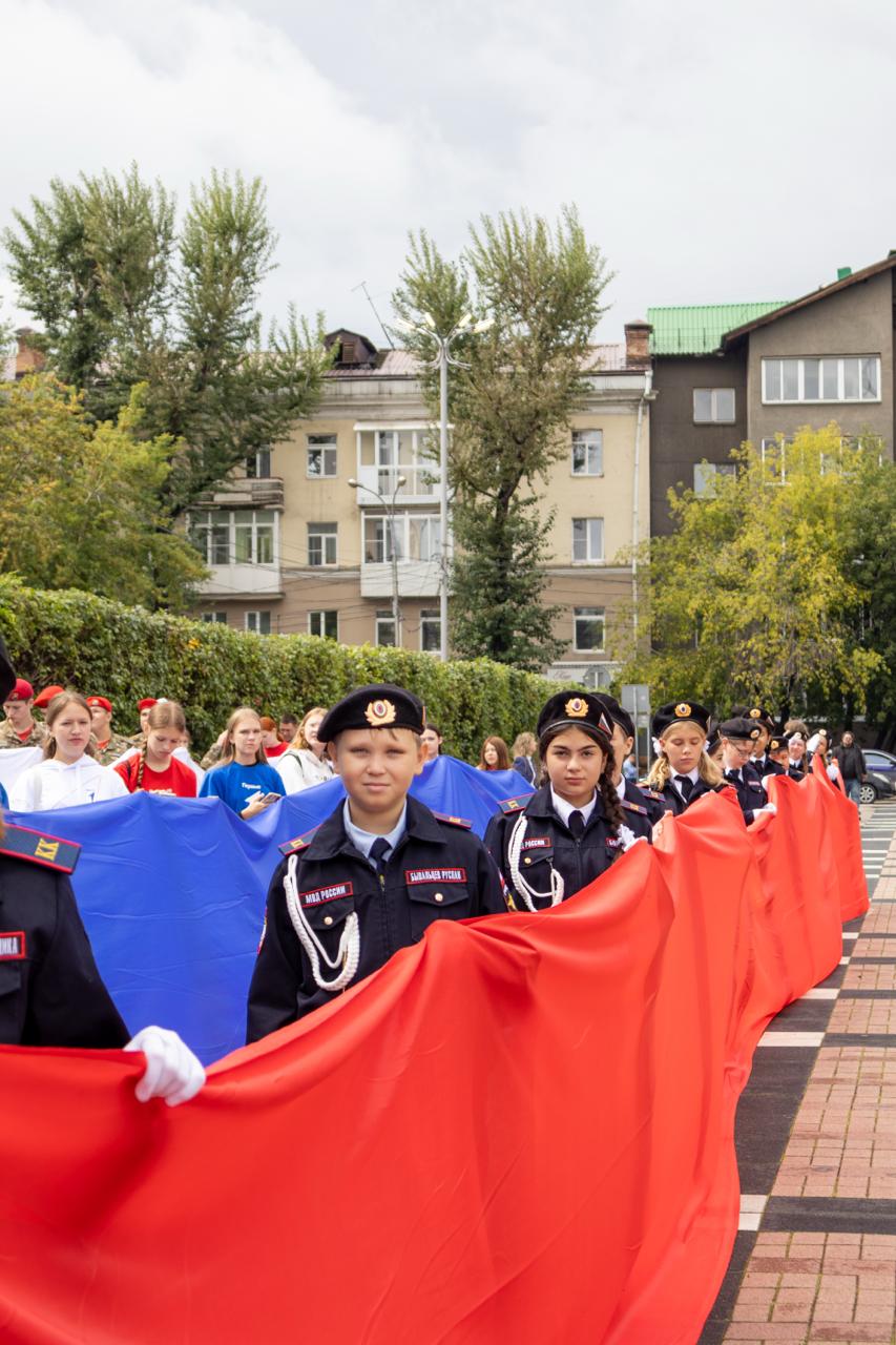 Кульминацией праздника стало масштабное развёртывание триколора. Государственный символ 25 метров длиной вынесли сотрудники МВД, службы судебных приставов и Росгвардии, представители общероссийских общественных движений детей и молодежи «Движение первых» и «Молодежка Народного Фронта», кадеты корпуса МВД школы №38 г. Иркутска. Проведение праздника легендарного триколора утверждает преемственность поколений, укрепляет патриотический дух, объединяет разные народы, способствует стремлению сделать Россию единым и сильным государством. В торжественном мероприятии приняли участие более 600 человек.