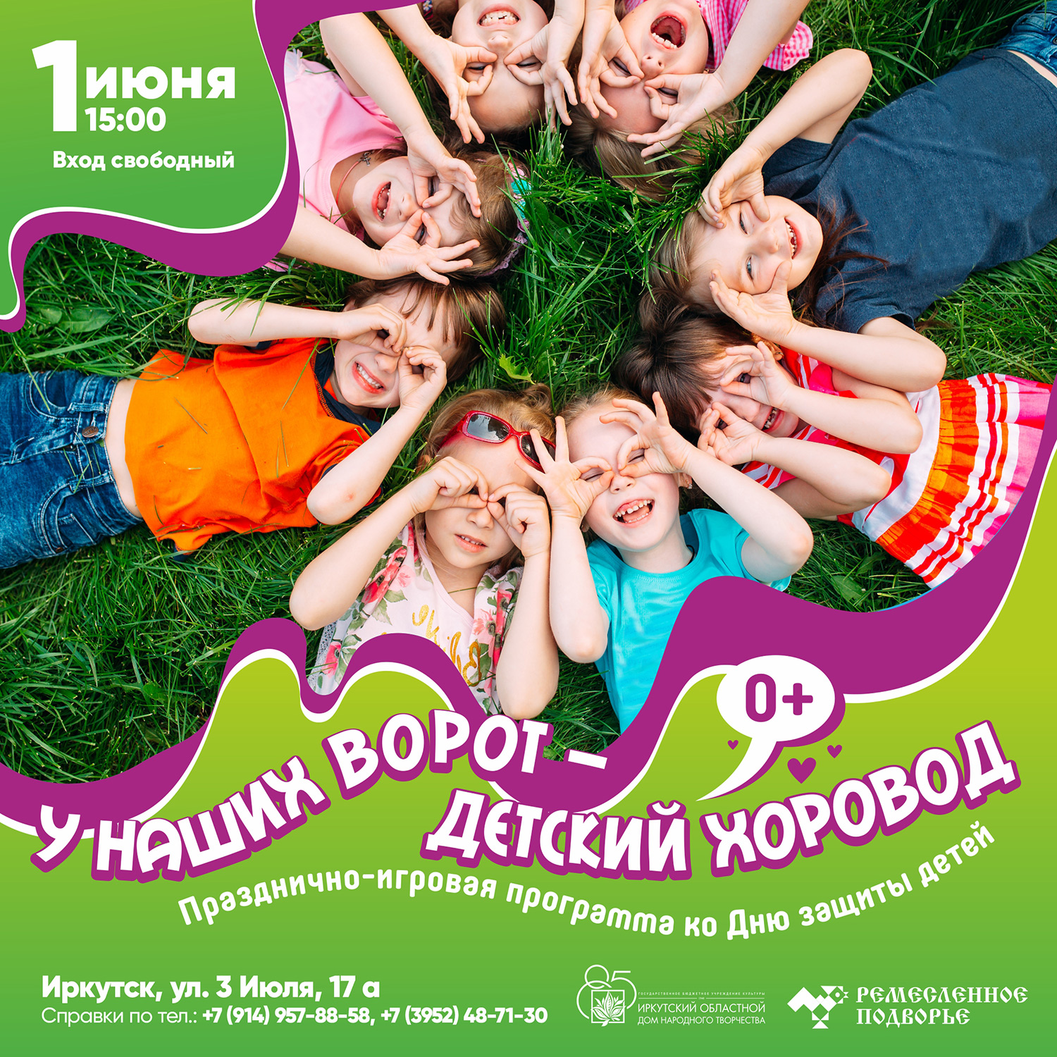 1 июня в 15:00 Ремесленное подворье приглашает отметить Международный день защиты детей и ярко встретить первый день долгожданного лета. Малышей и их родителей встретят народные забавы, кукольный спектакль и творческие мастер-классы. Вход свободный!