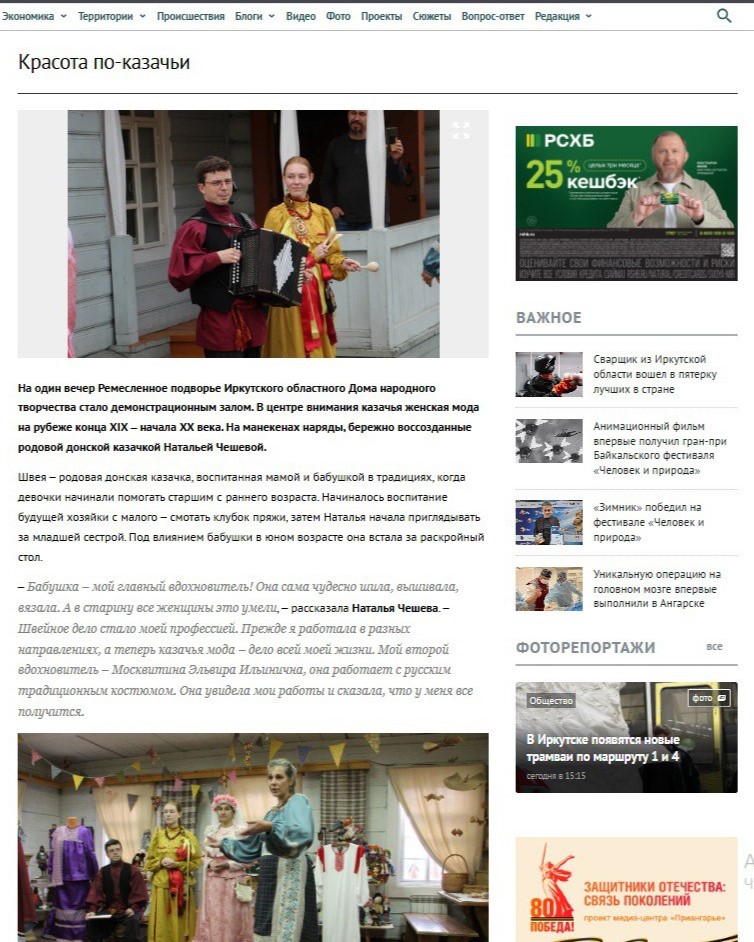 Статья и фото Марии Слепцовой в общественно-политической газете "Областная" № 105 (2895) от 17 сентября 2025: https://www.ogirk.ru/2025/09/17/krasota-po-kazachi/