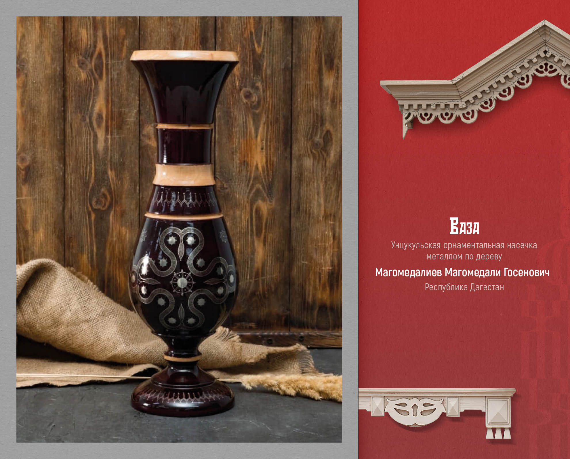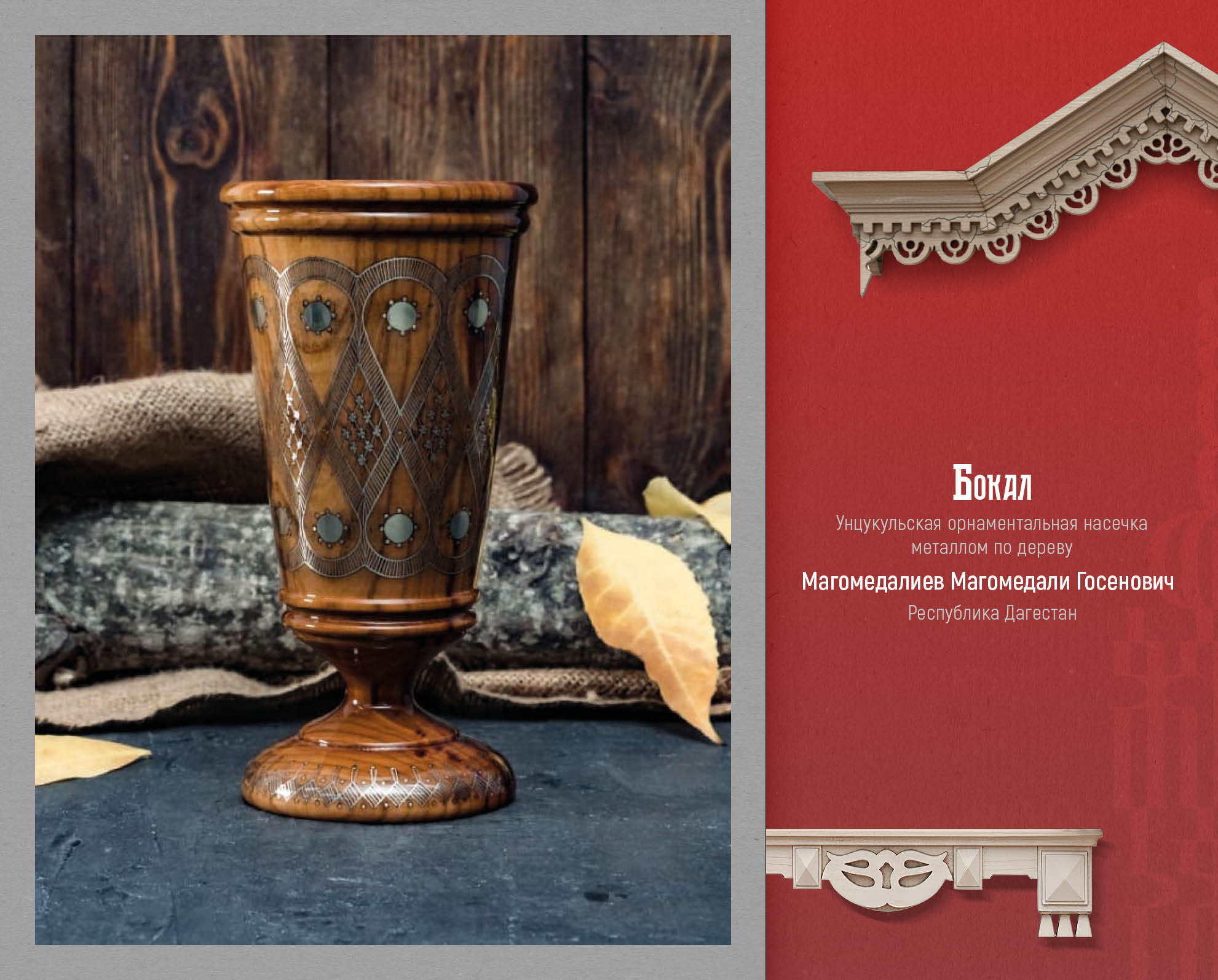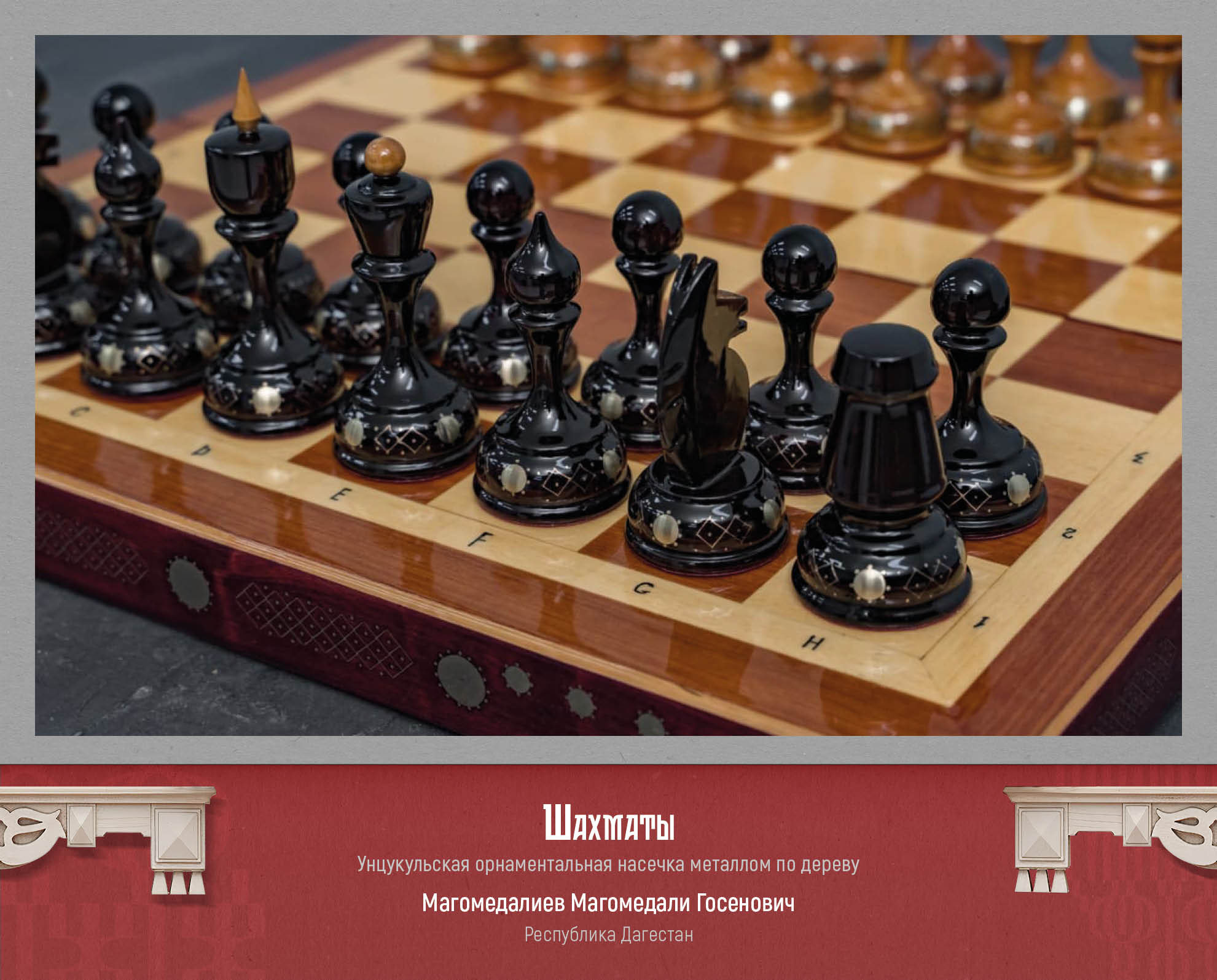 Уникальное дагестанское искусство, символ культурного наследия, деревянные изделия с унцукульской орнаментальной насечкой металлом представил лауреат премии Правительства Дагестана «Душа Дагестана» Магомедали Магомедалиев. Унцукульская орнаментальная насечка представляет собой инкрустацию дерева тонкой металлической проволокой. Зародившись в аварском селе Унцукуль, этот промысел стал одним из символов культурного наследия Дагестана. Унцукульские орнаменты отличаются сложностью геометрических узоров, имеющих глубокий символизм. Они отражают мировоззрение, эстетические идеалы и верования горцев. Традиционно эта техника использовалась для украшения оружия, посохов, предметов быта и интерьера, превращая утилитарные вещи в высокохудожественные произведения. Настоящее искусство, оно играет ключевую роль в сохранении культурной идентичности и передаче традиций от поколения к поколению. Несмотря на технократичные вызовы современности мастера Унцукуля продолжают развивать промысел, сохраняя вековые каноны и находя новые формы для их воплощения. Таким образом, унцукульская насечка остается живым и актуальным явлением, способствующим межкультурному диалогу.