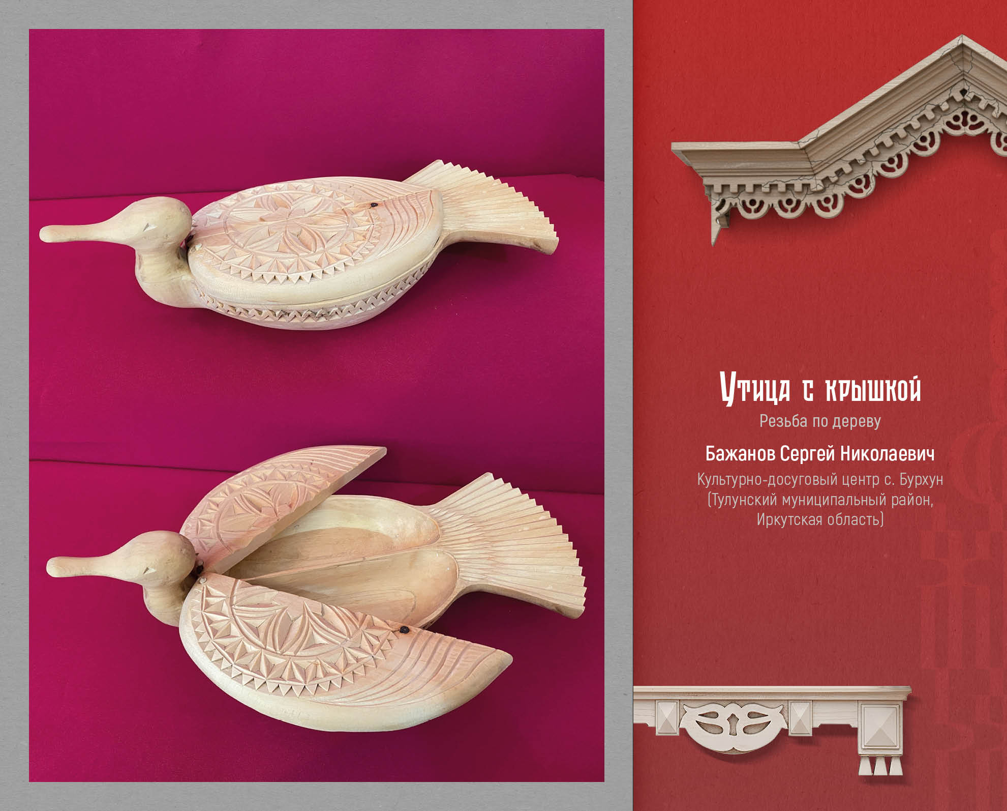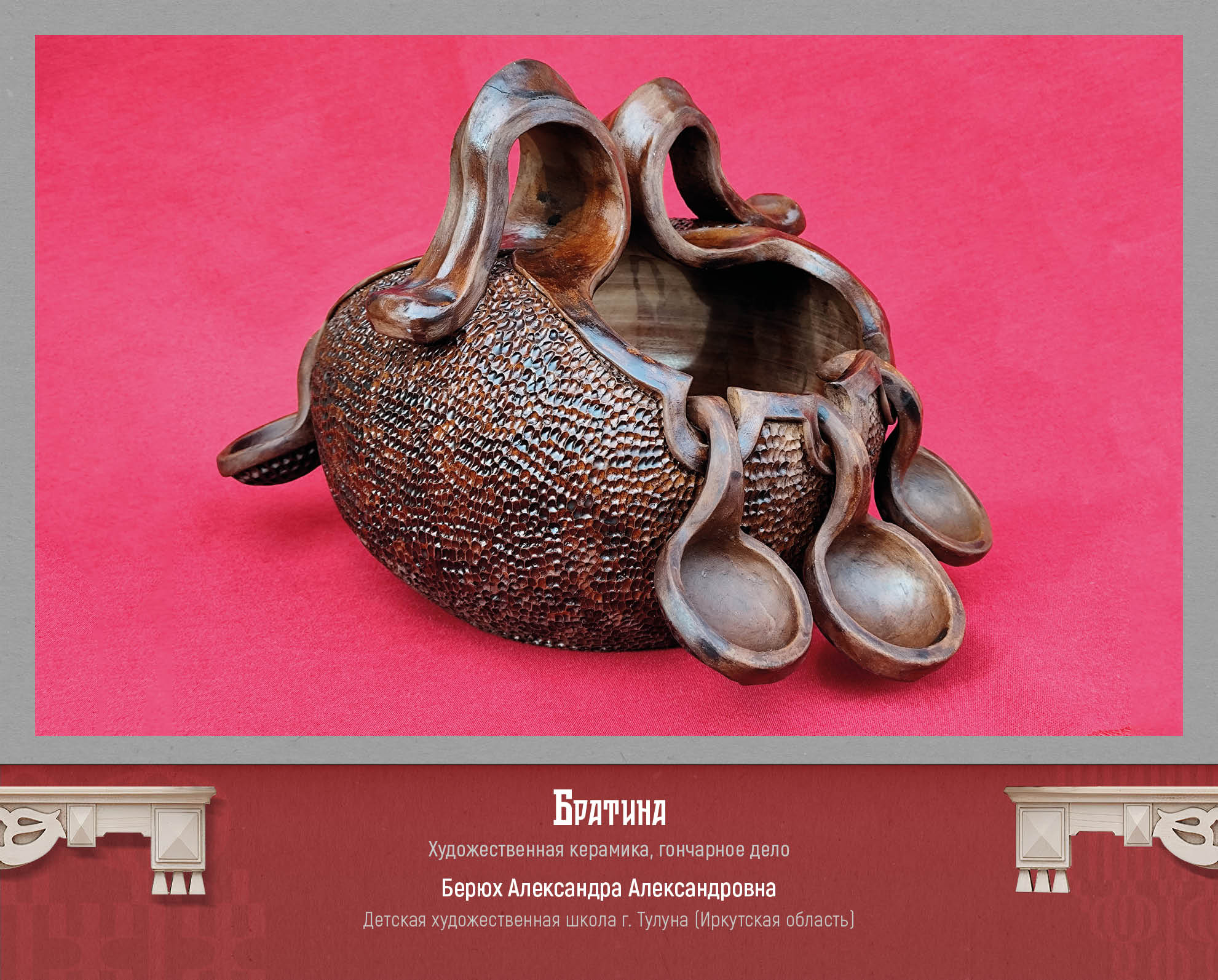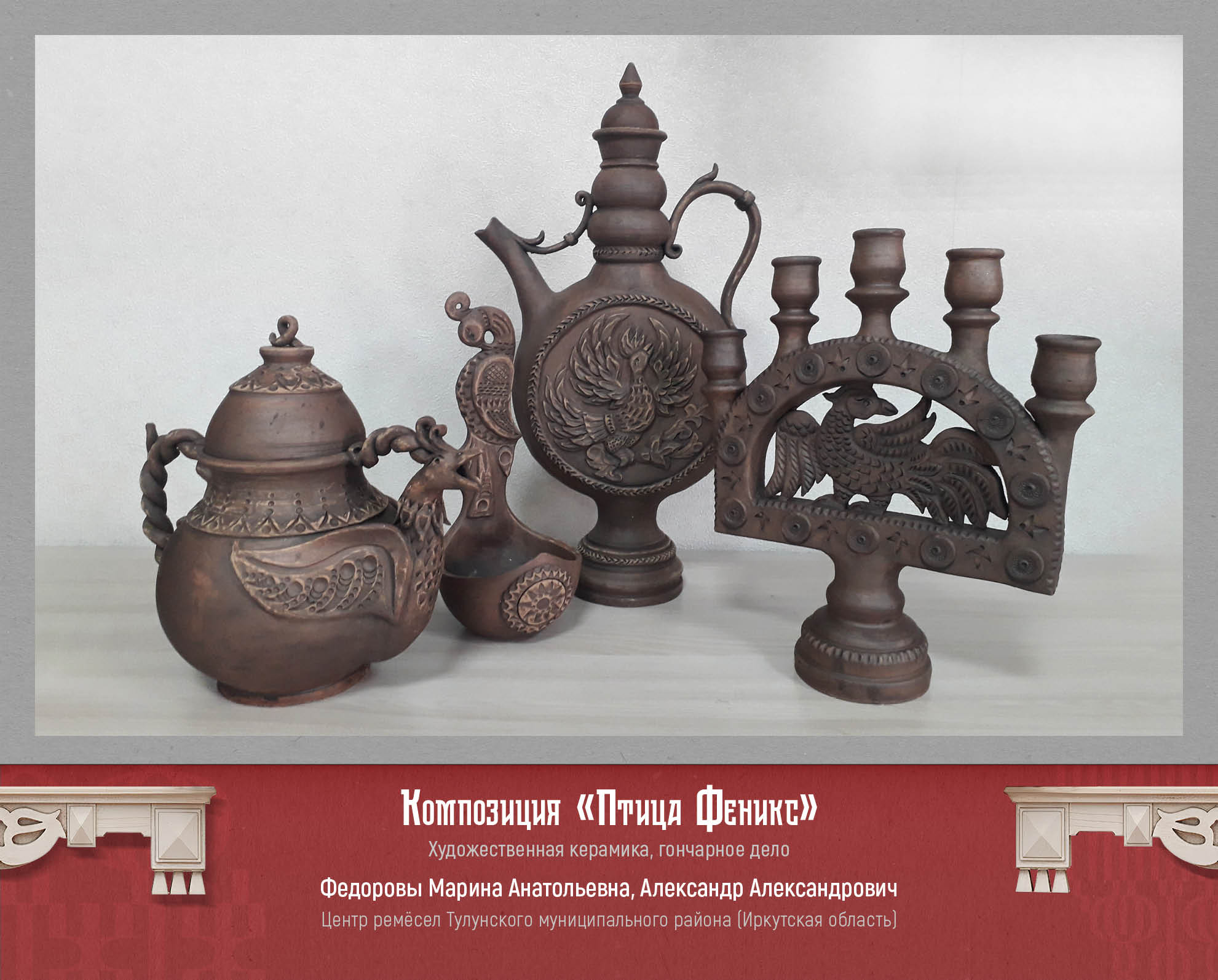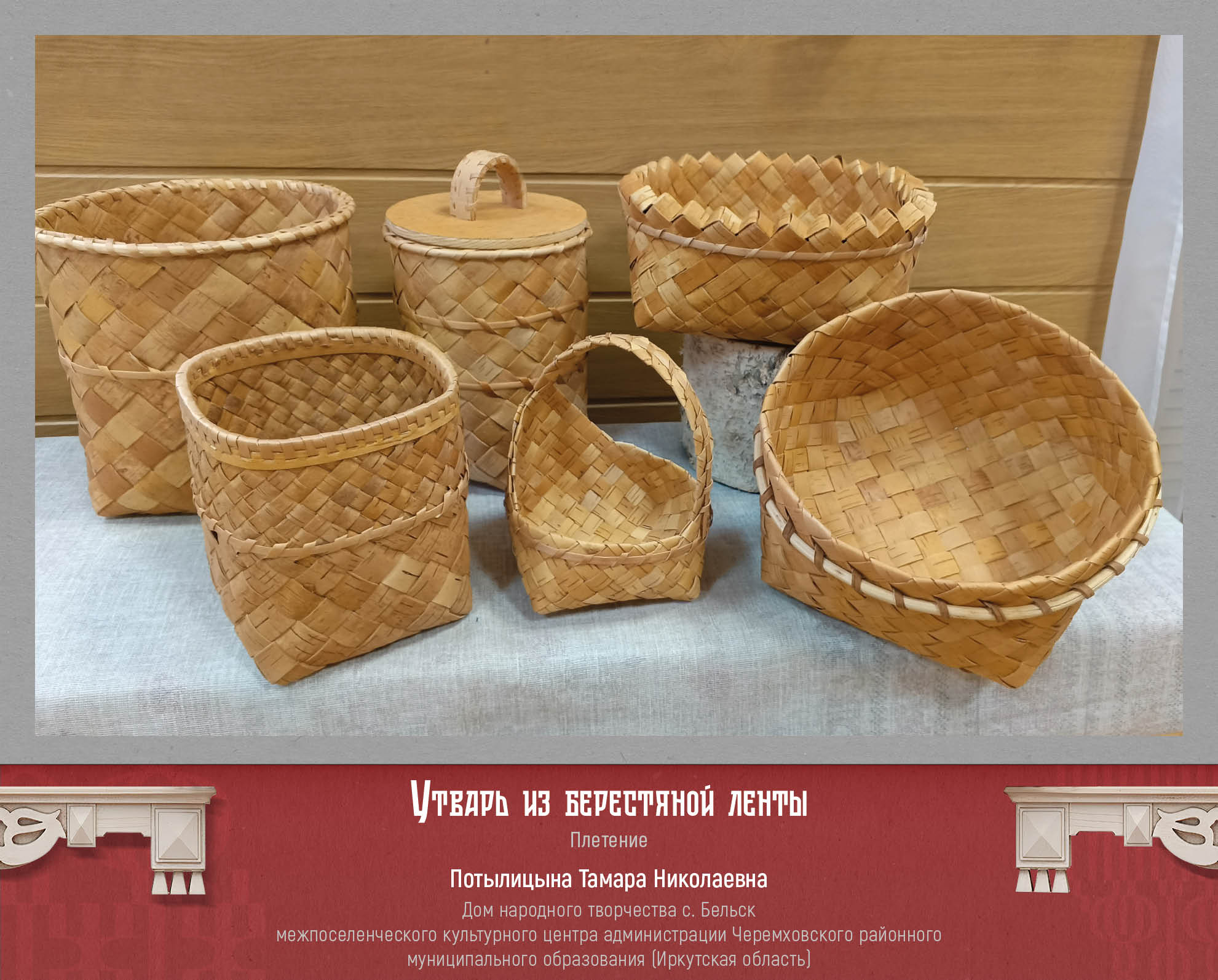 Изделия из бересты и дерева, ткачество и лоскутное шитье, роспись по дереву и фарфору, плетение и авторская текстильная кукла, костюм: полёт творческой фантазии и сохранение традиций, многообразие и яркость – вот основные характеристики виртуальной выставки «В ремесле мы едины». В экспозицию вошло 50 творческих работ лауреатов и дипломантов конкурса.
