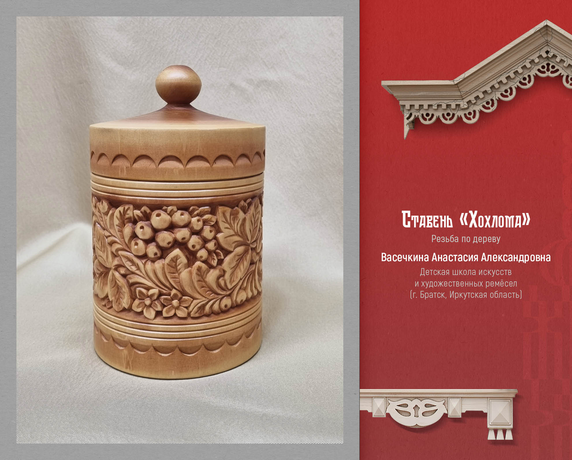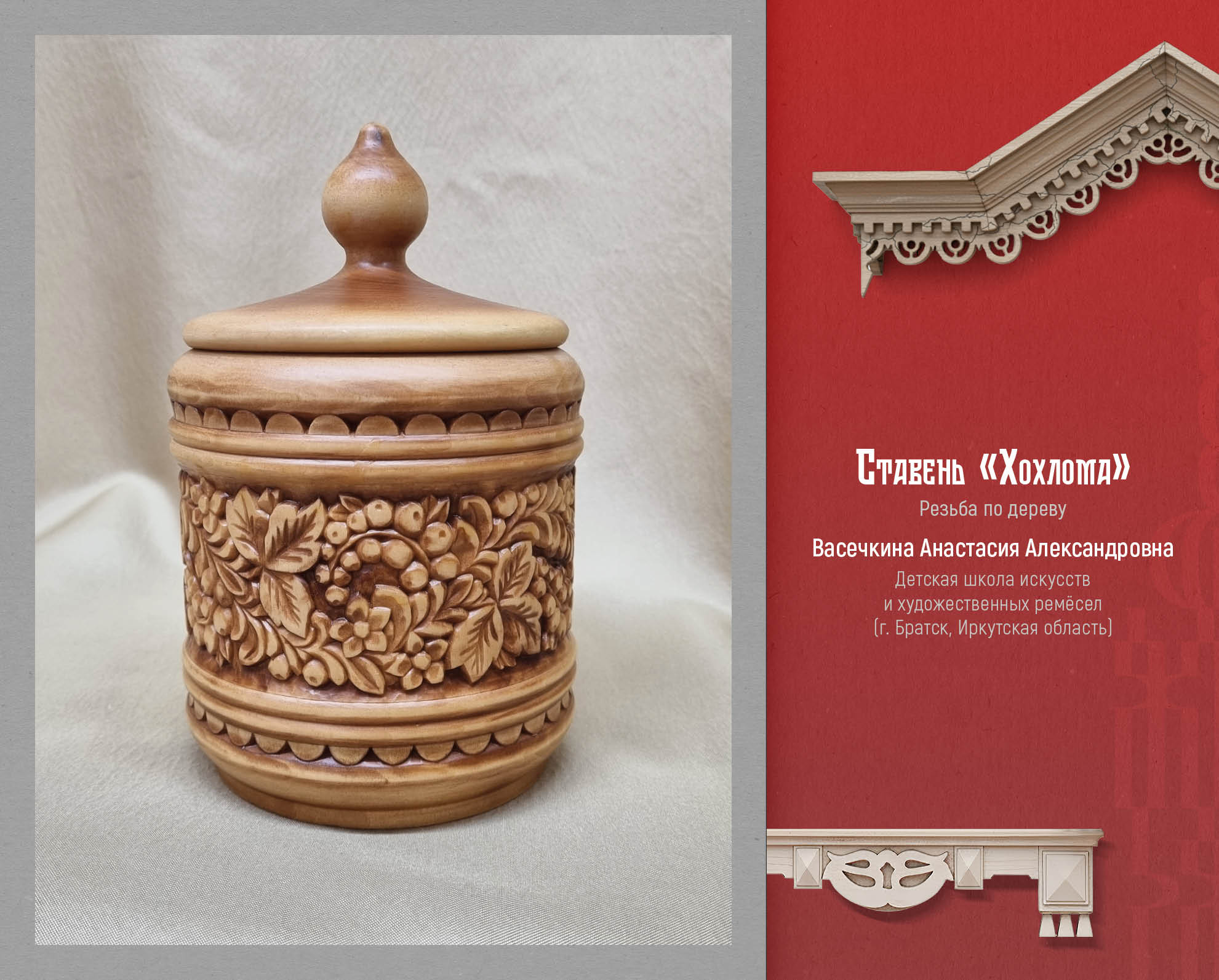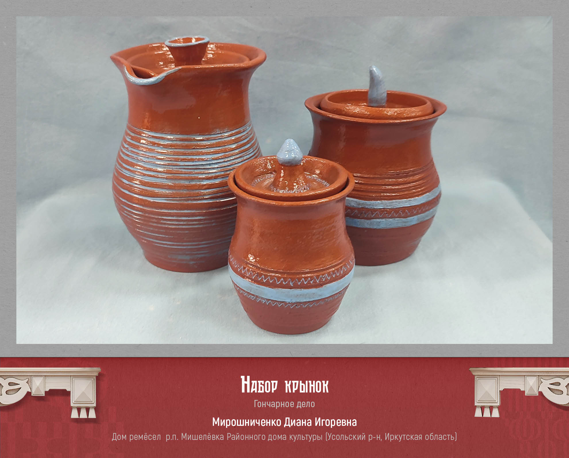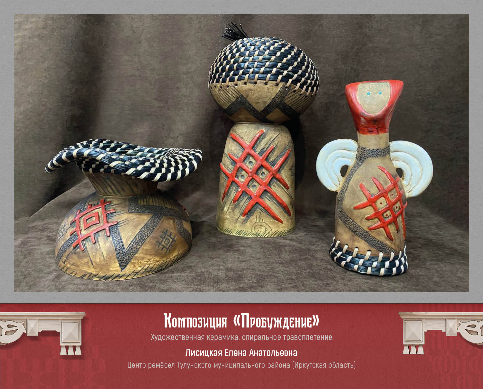 Широко представлены резьба по дереву, ткачество, традиционная роспись, плетение из природных материалов, художественная керамика и гончарное дело. Все творческие работы демонстрируют глубокое знание традиционных видов и технологий.