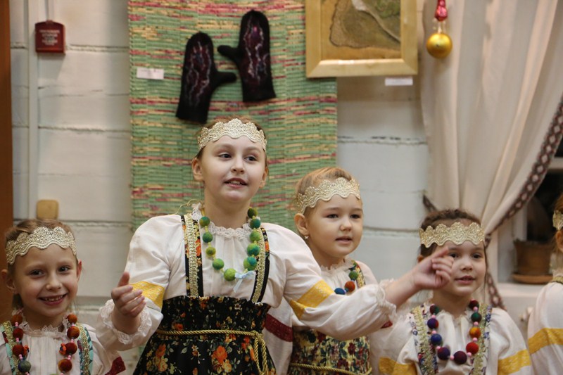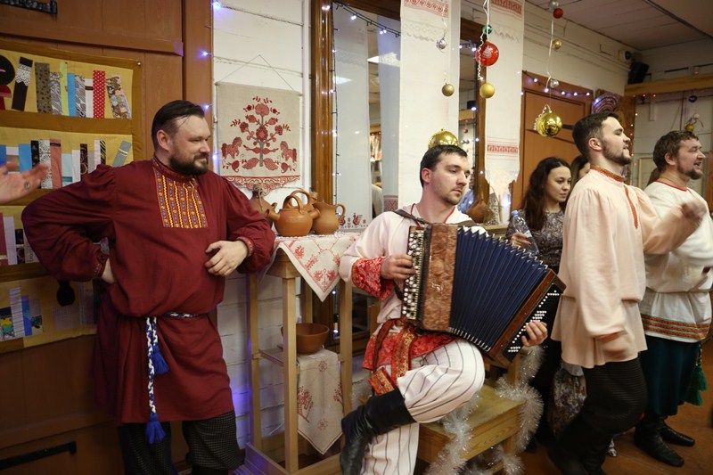 Все зрители сразу стали активными участниками посиделок. Ансамбль «Оберег» познакомил собравшихся с традициями встречи колядок.