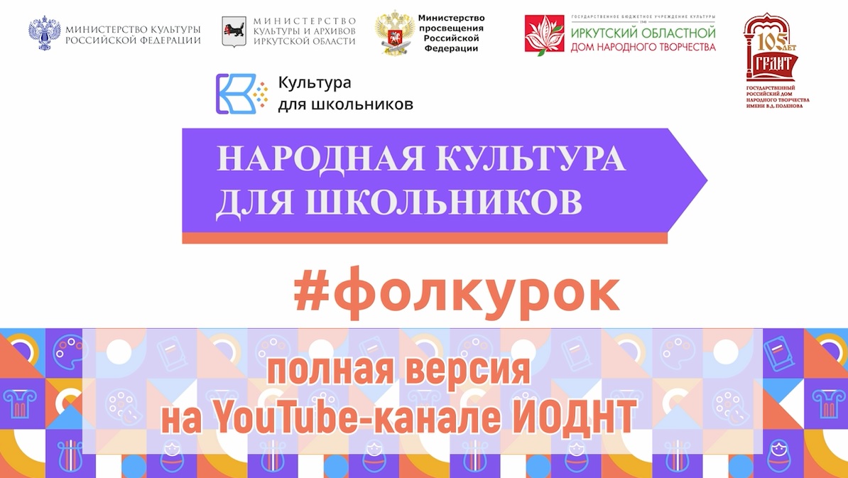 Иркутский областной Дом народного творчества участвует во Всероссийской акции. Открытые онлайн-уроки транслируются в сети Интернет в феврале и марте. Найти их можно по хештегам: #фолкурок #традициившколу.