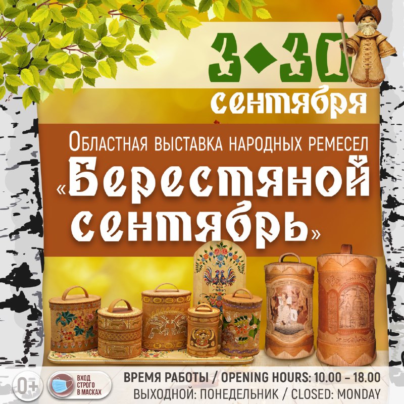 Выставка «Берестяной сентябрь» открыта до 30 сентября. Экспозиция работает со вторника по воскресенье с 10.00 до 18.00. Входной билет – 100 рублей.