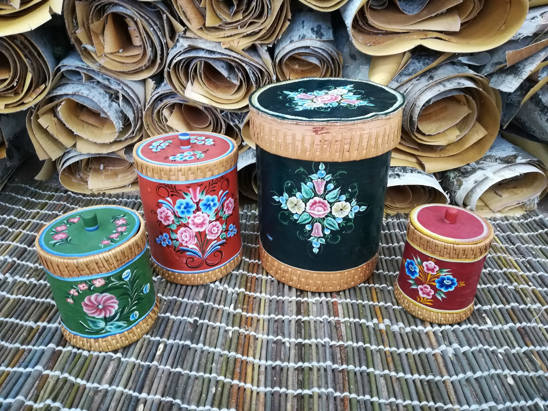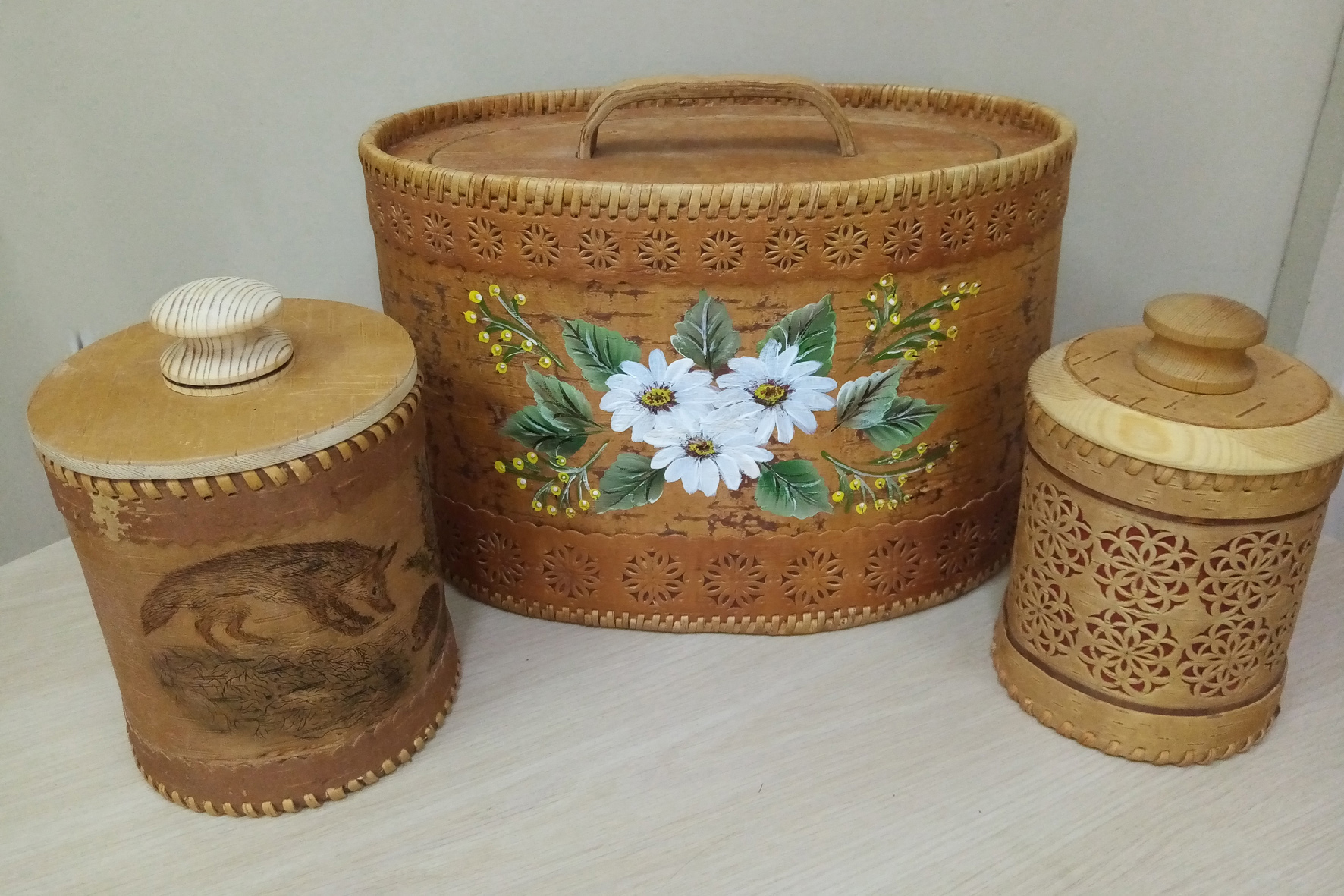 Набор туесов. Народный мастер Иркутской области Галина Макаренко. Межпоселенческий центр культуры (Усть-Илимский район, Иркутская область)