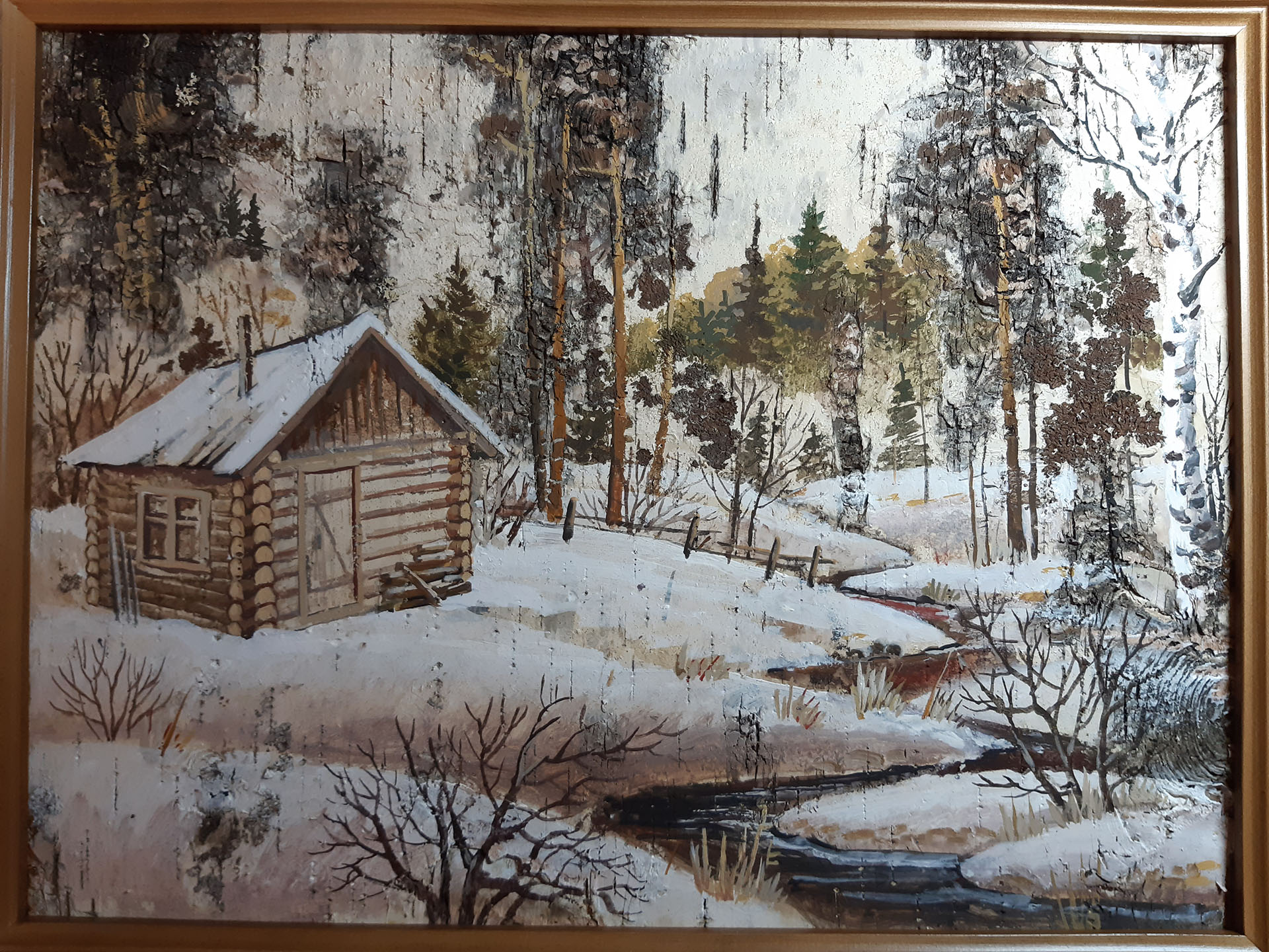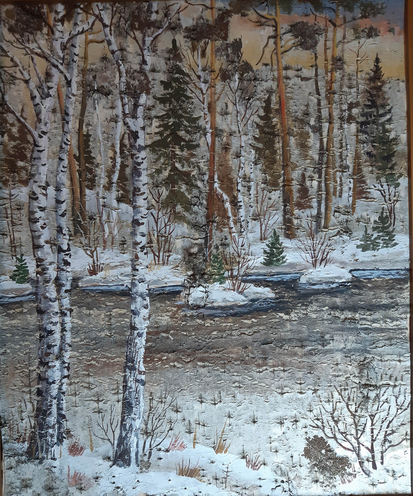 Панно «Зимовье». Евгений Михеенков. Народное творческое объединение «Мастера Илима». Школа искусств № 2 имени Т. Г. Сафиулиной (г. Усть-Илимск, Иркутская область)