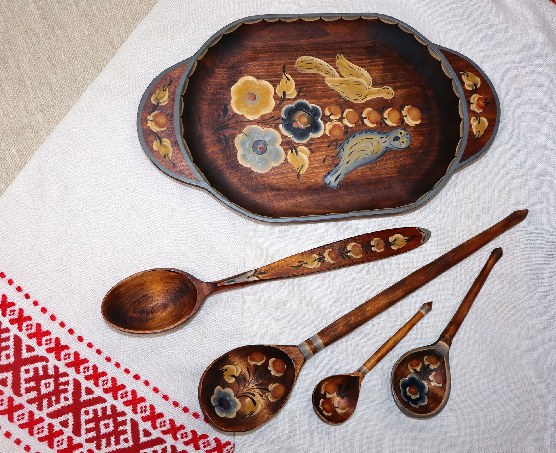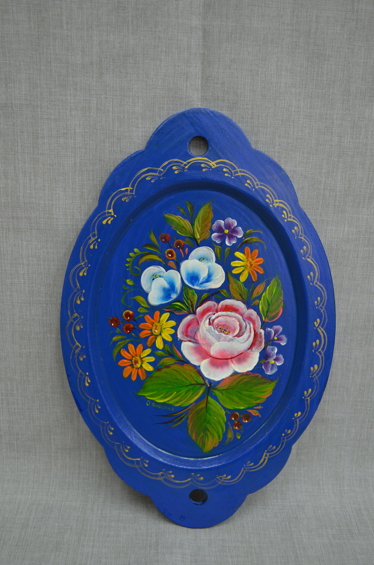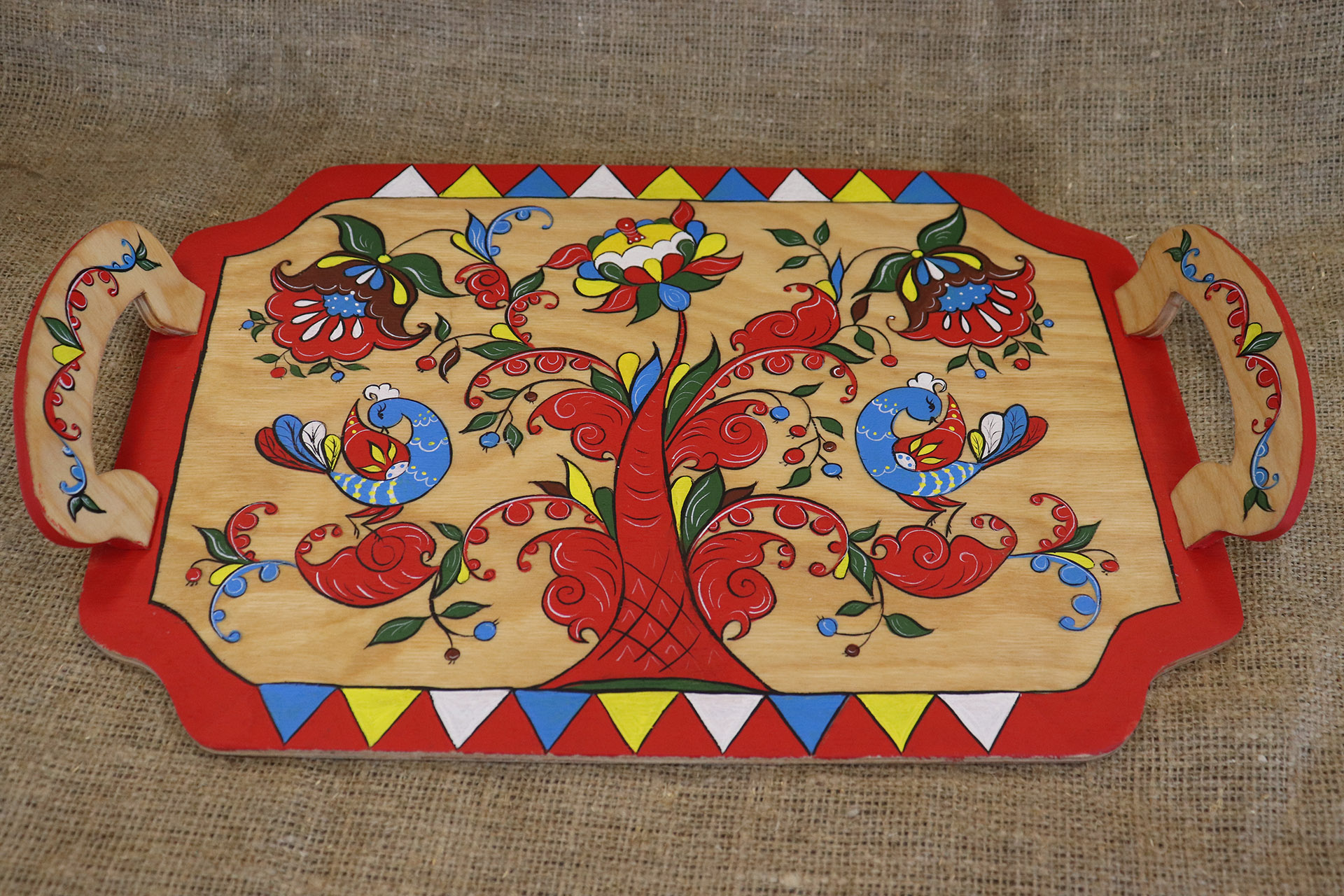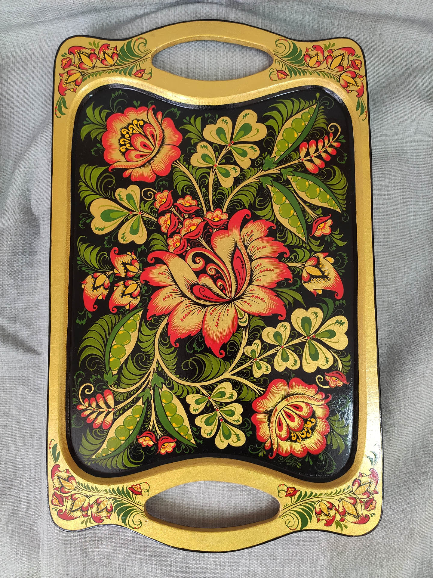 Поднос с флоральным орнаментом. Людмила Семенова. Народное творческое объединение «Мастера Илима». Школа искусств № 2 имени Т. Г. Сафиулиной (г. Усть-Илимск, Иркутская область)