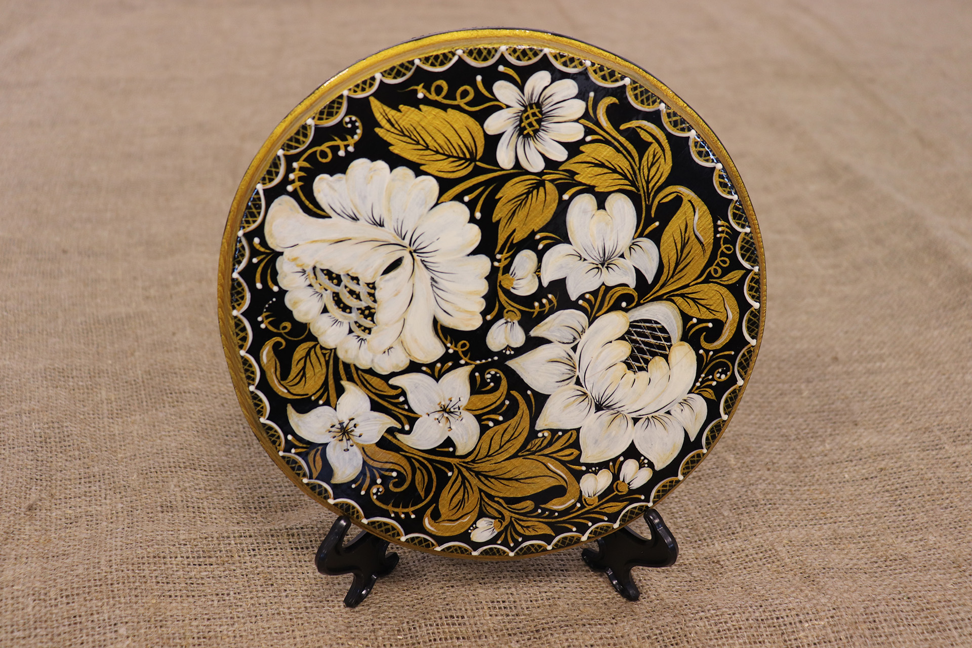 Декоративная тарелка «Пионы». Оксана Споялэ. Центр «Народные ремесла» (Чунский район, Иркутская область)