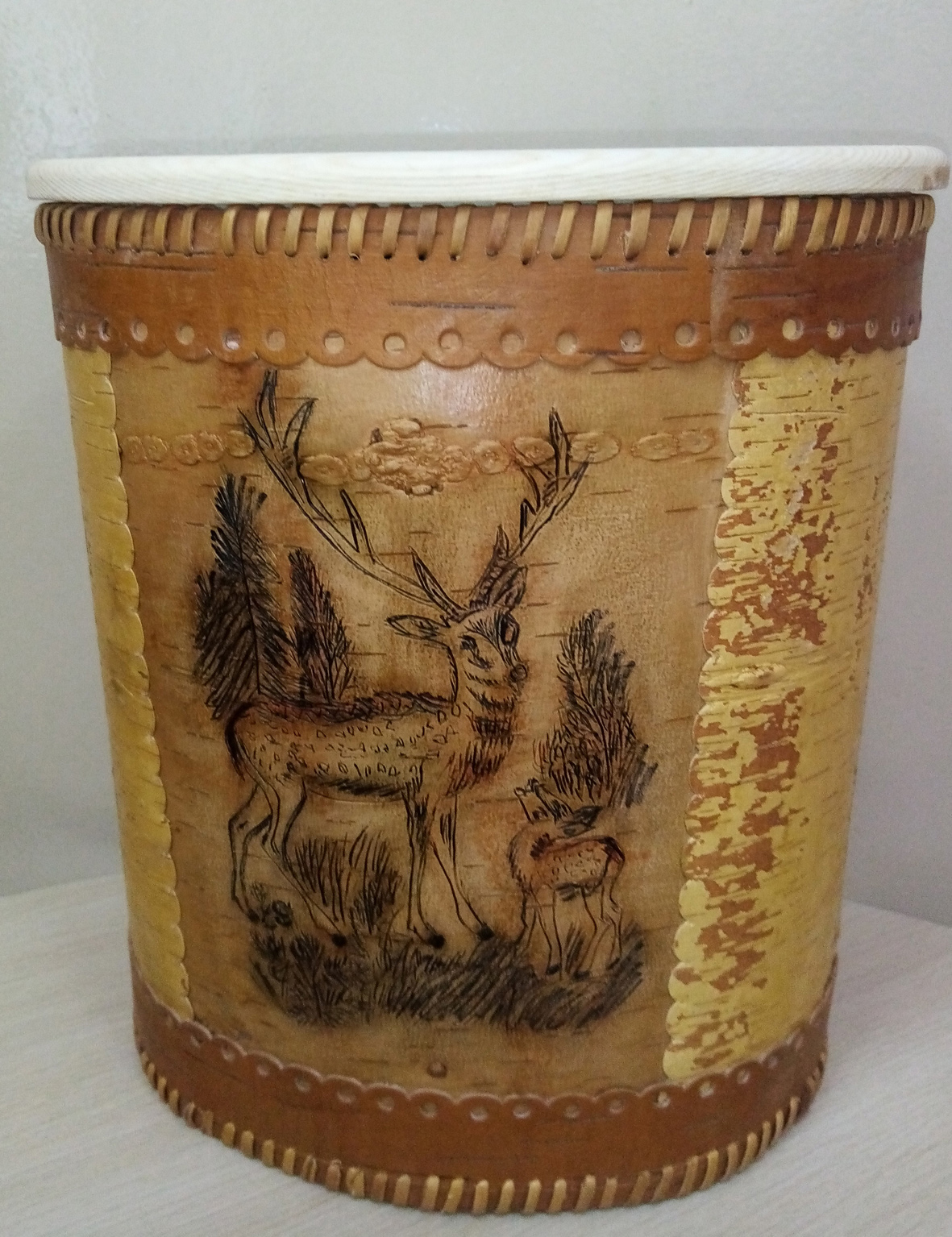 Туес «Олененок в лесу». Любовь Хатковая. Межпоселенческий центр культуры (Усть-Илимский район, Иркутская область)