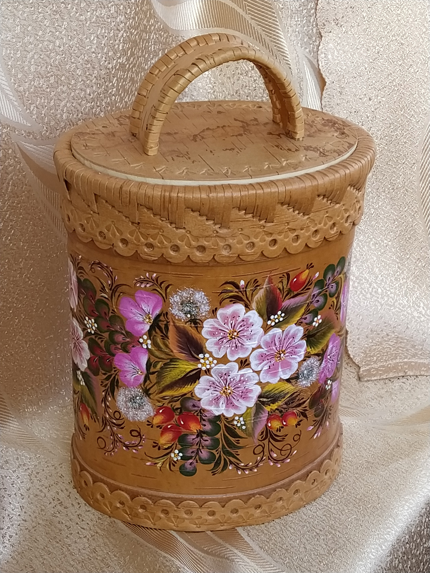 Туес «Цветочный». Любовь Хатковая. Межпоселенческий центр культуры (Усть-Илимский район, Иркутская область)