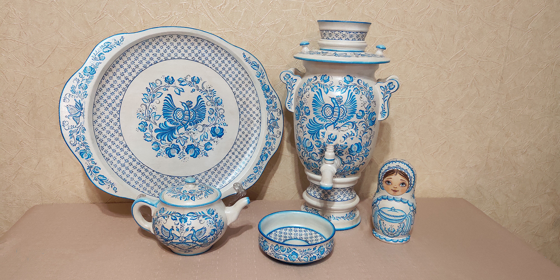 Набор посуды «Квасник с кружками на подносе» Елена Смирнова. Центр ремесел (Тулунский район, Иркутская область)