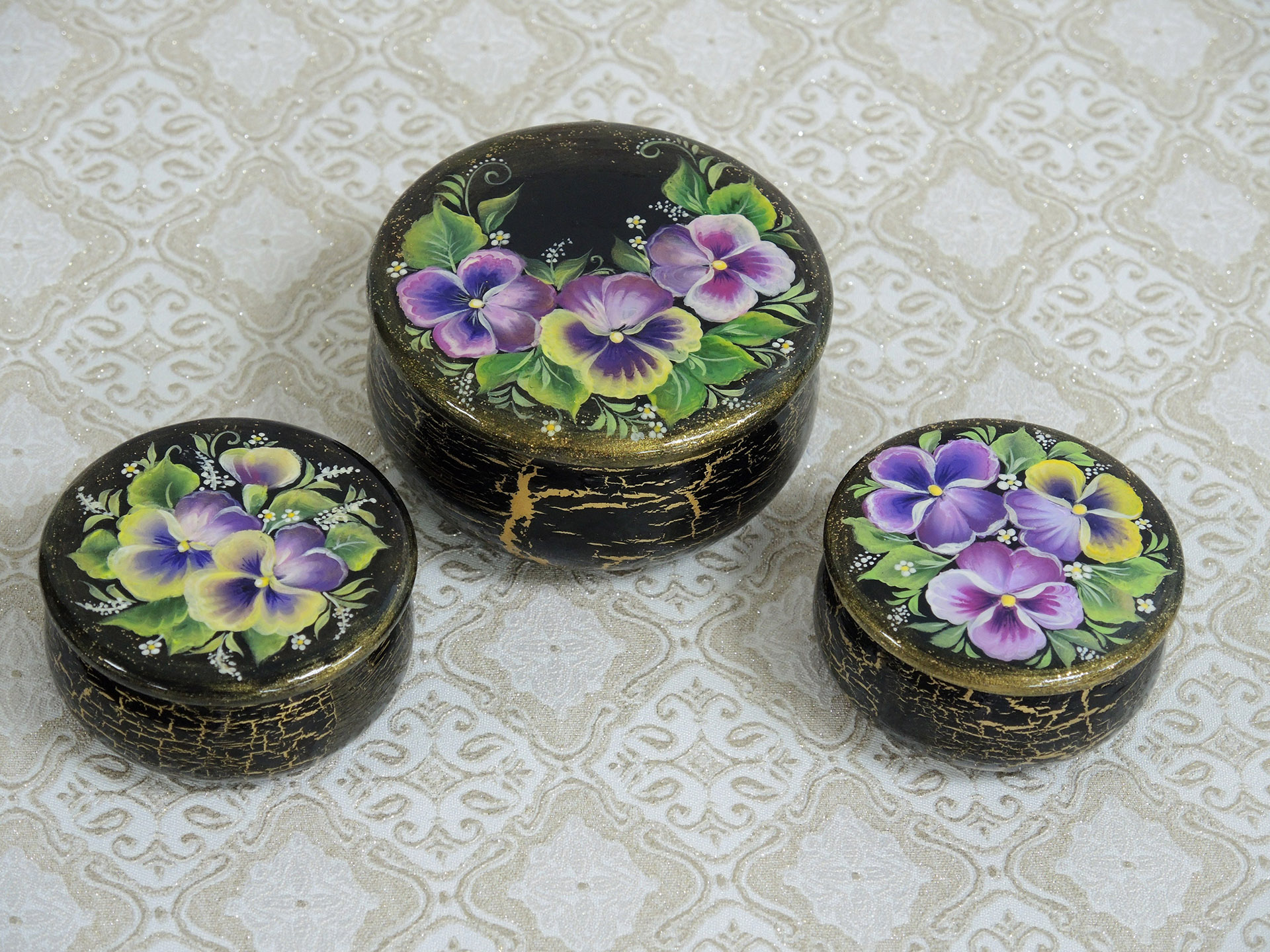Лубяные коробки с росписью. Наталья Конюхова. Школа-мастерская народных промыслов, филиал Центра народных художественных промыслов и ремесел (г. Урай, Ханты-Мансийский автономный округ – Югра)