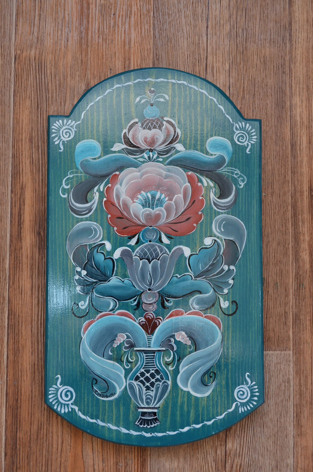 Поднос с флоральным орнаментом. Ольга Улютенко. Народное творческое объединение «Мастера Илима». Школа искусств № 2 имени Т. Г. Сафиулиной (г. Усть-Илимск, Иркутская область)