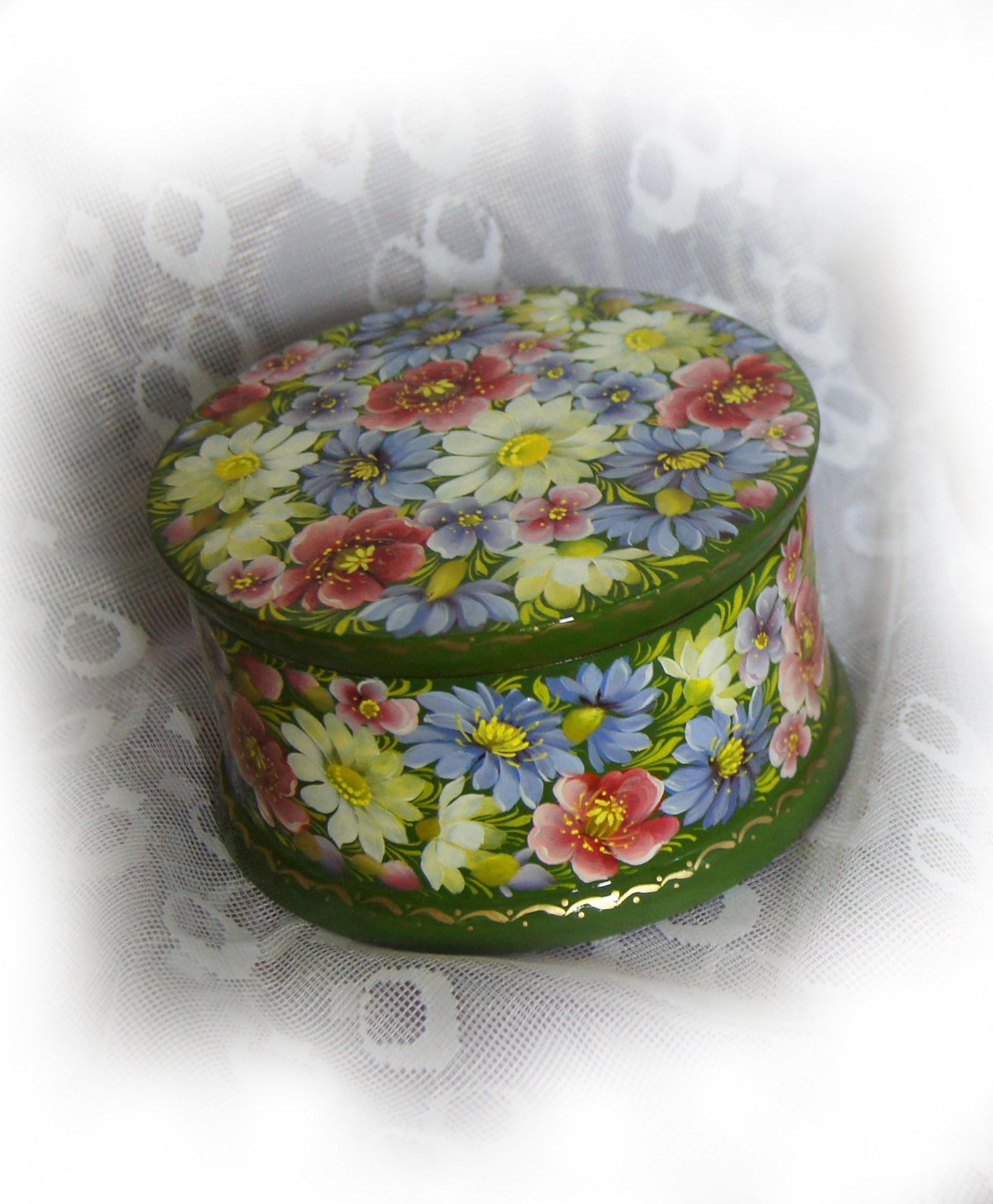 Туес «Садовые цветы». Ольга Беляева. Кемеровский государственный институт культуры (г. Кемерово, Кемеровская область)