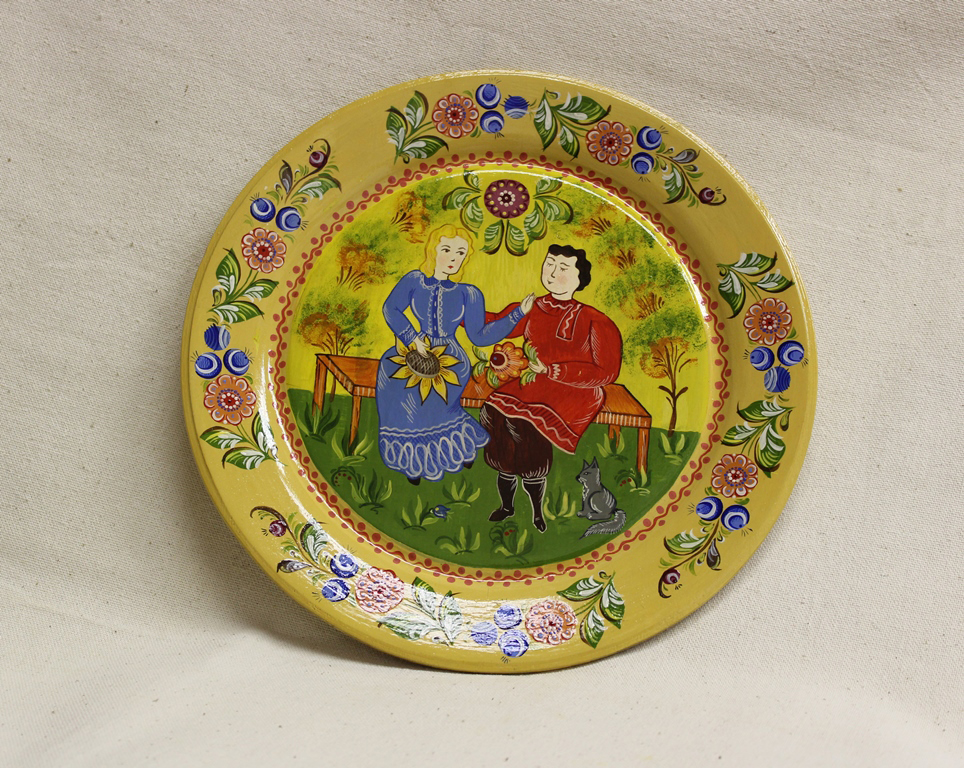 Декоративная тарелка «Новобрачные». Алена Кургасова. Школа искусств и ремесел (г. Братск, Иркутская область)