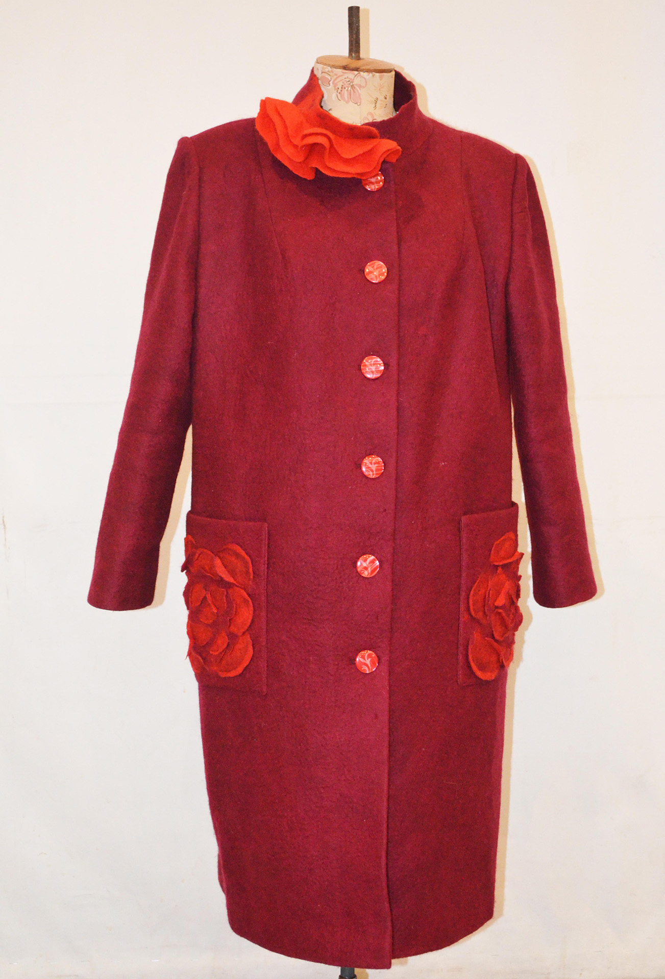 – одежда: пальто, пиджаки, платья, жилеты, кардиганы. Войлочные вещи экологически чистые и теплые. Войлок красят, соединяют разный по плотности, наносят на него аппликации и вышивки, компонуют с другими материалам, что позволяет получать совершенно необычные и удивительно красивые вещи.