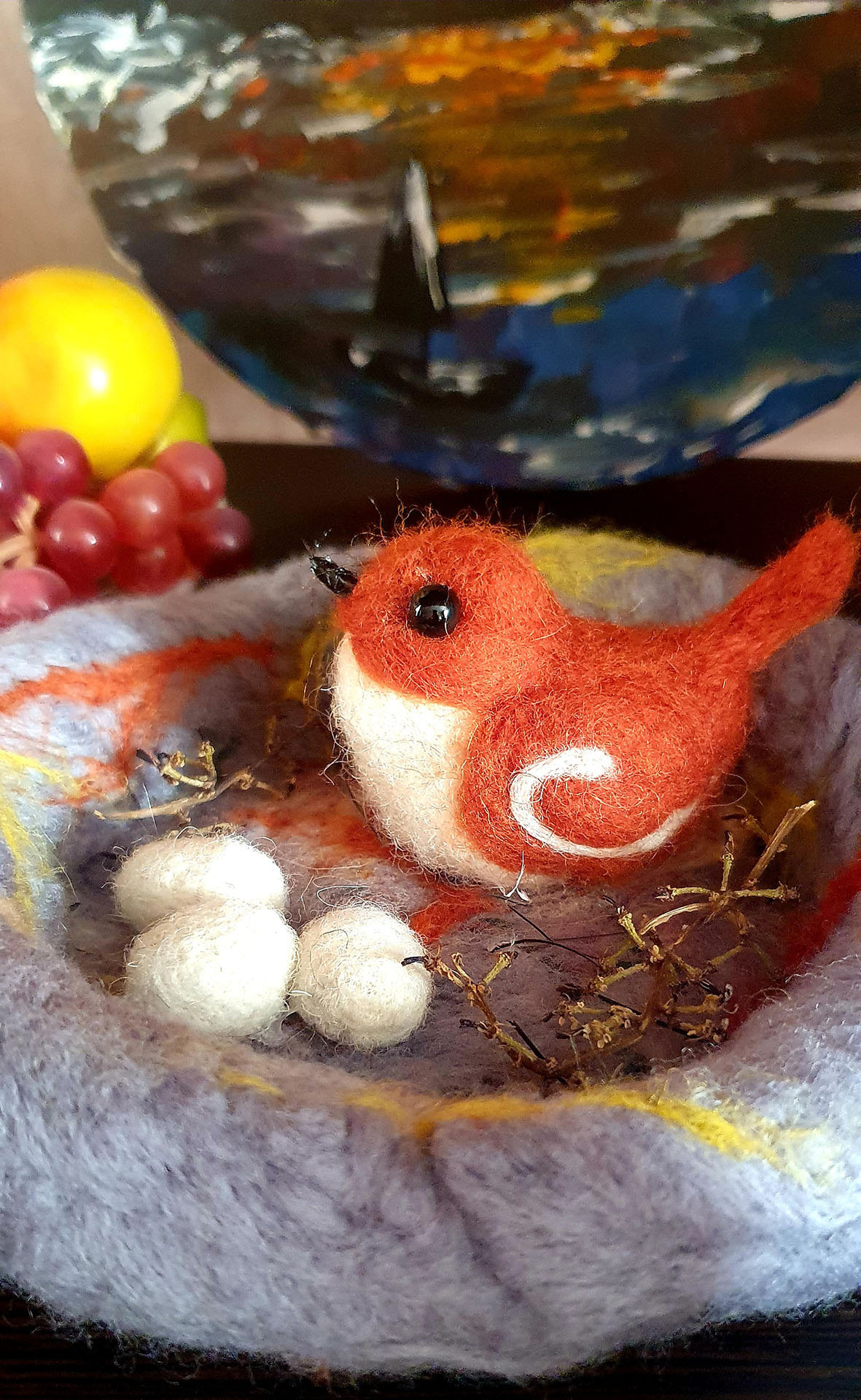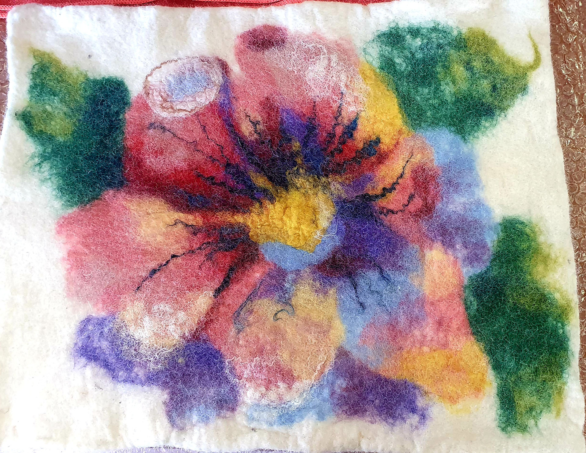 – предметы интерьера: декоративные панно и наволочки, картины, абажуры, салфетки. Особый вид войлока используется при производстве декоративной посуды: вазочек, чаш, тарелок, кашпо.
