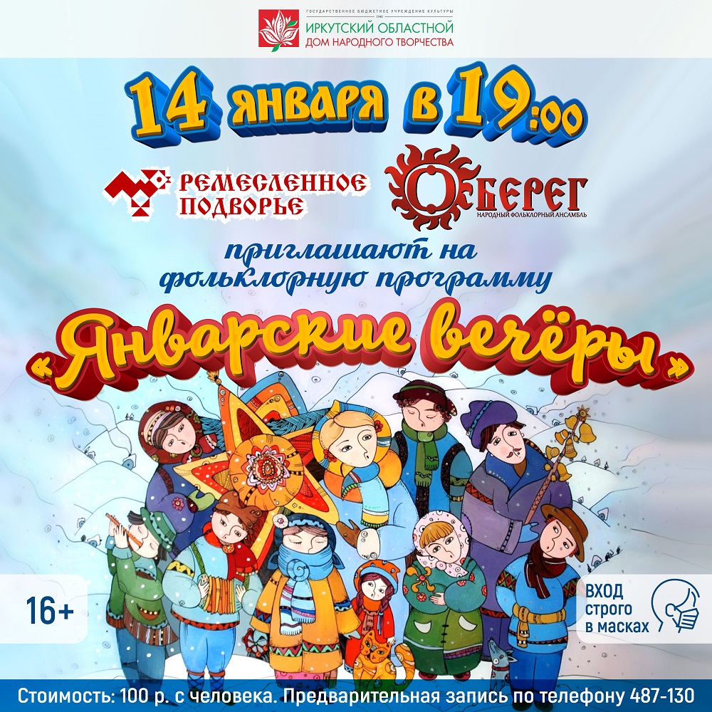 Традиционные русские забавы вместе с гостями Ремесленного подворья вспомнит народный фольклорный ансамбль «Оберег». Приглашаем на «Январские вечёры» старых и новых друзей!