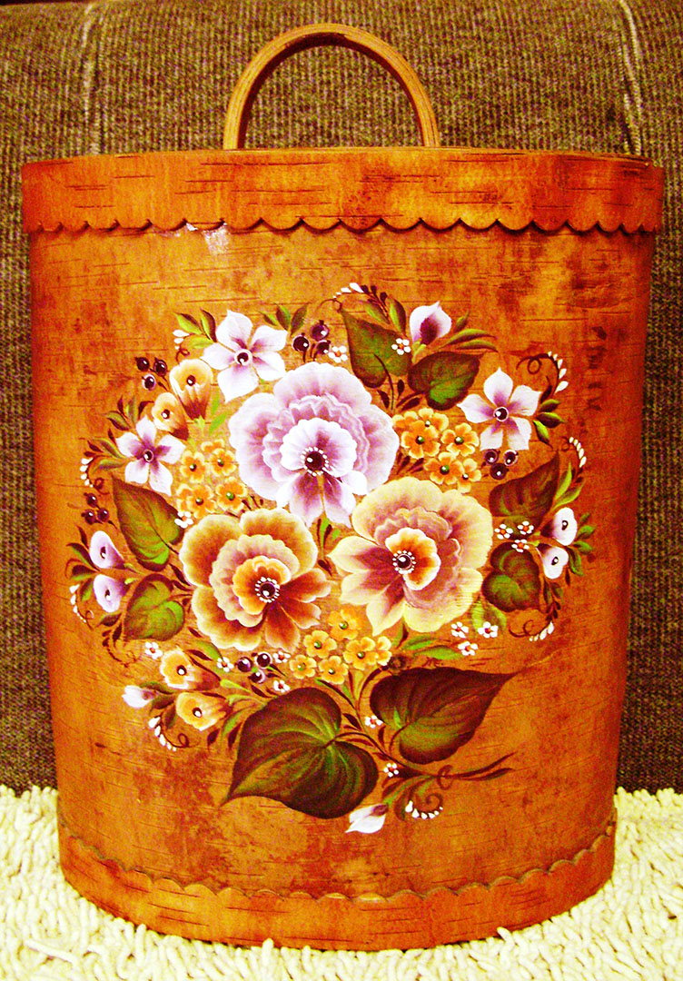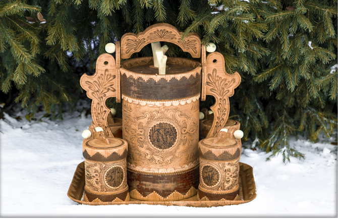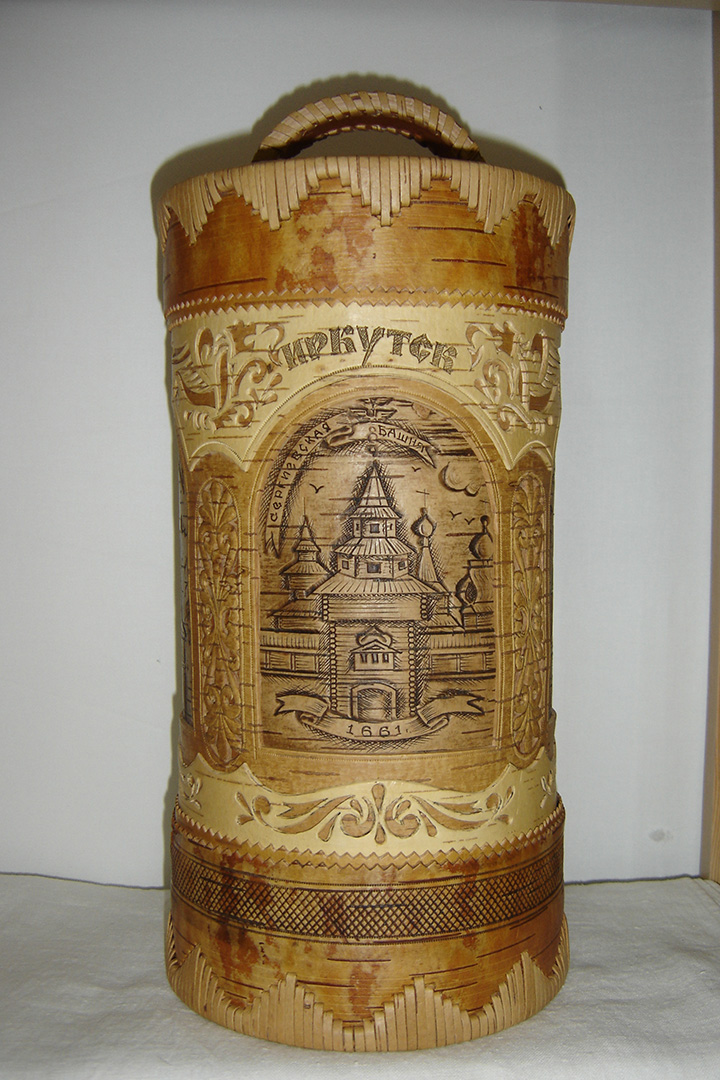Создание утилитарных и декоративных предметов из бересты – одно из древнейших ремесел, которым занимались разные народы, проживающие на территории России. Мастера Иркутской области сохраняют одну из наиболее сложных традиционных технологий работы с берестой. Она отличается от массово распространенных сувенирных поделок, выполняемых из одного слоя бересты встык. Эта традиция – изготовление ёмкостей из так называемого «сколота» из гладкого берёзового ствола. Кора аккуратно отделяется от спила такого ствола и бережно снимается единым цельным полым цилиндром. В результате на стенках туеса или кружки не будет стыков, и его можно будет использовать в быту, в том числе и для хранения или сервировки жидкостей. Талантливые мастера нередко дополнительно декорируют сосуды многослойными берестяными прорезными орнаментами. Эта технология возникла в XVII – начале XVIII века.