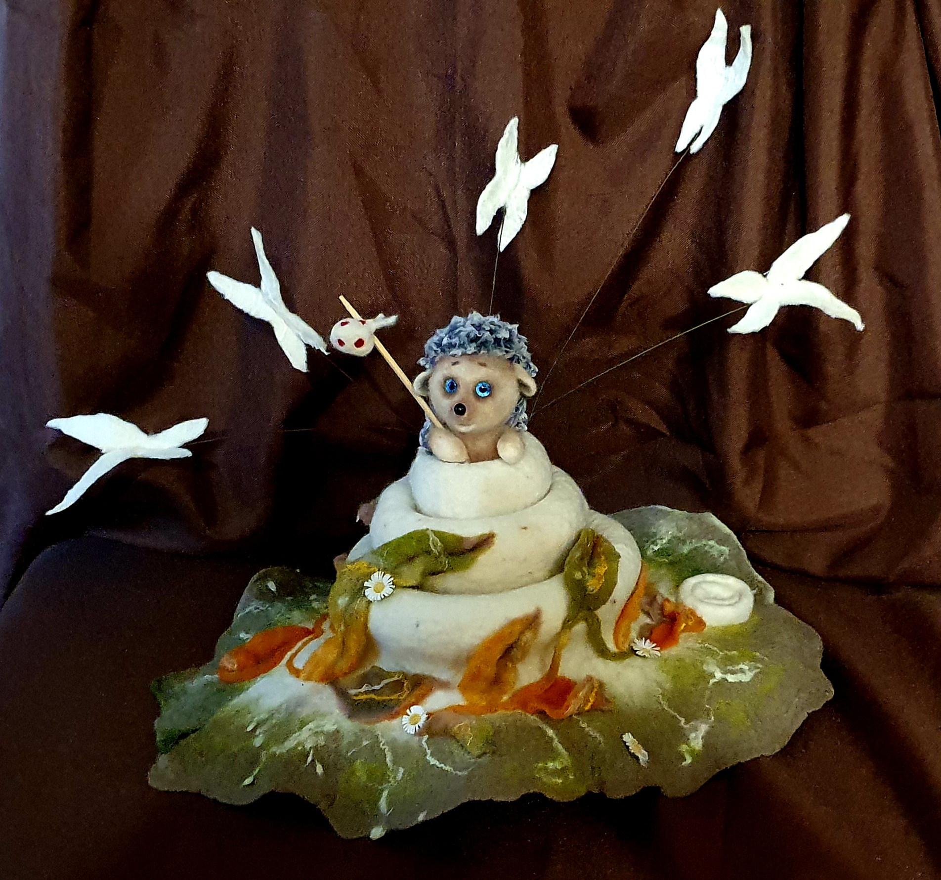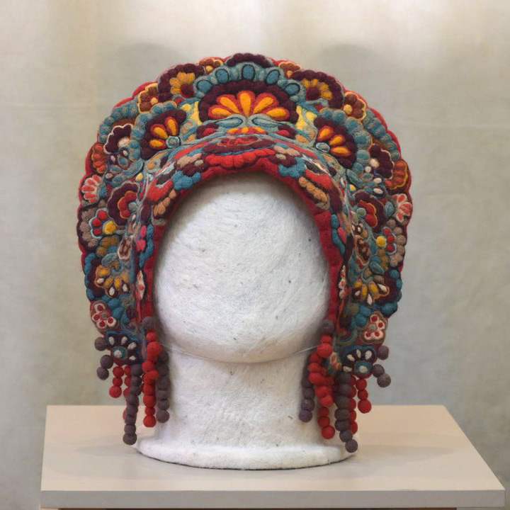 В экспозиции – головные уборы и связанные с ними сюжетные композиции, выполненные в различных техниках: войлоковаление, плетение из растительных материалов (лоза, солома), художественная обработка дерева и бересты, художественный текстиль, художественное вязание, кружевоплетение, художественная керамика, живопись, графика, художественная обработка современных материалов.