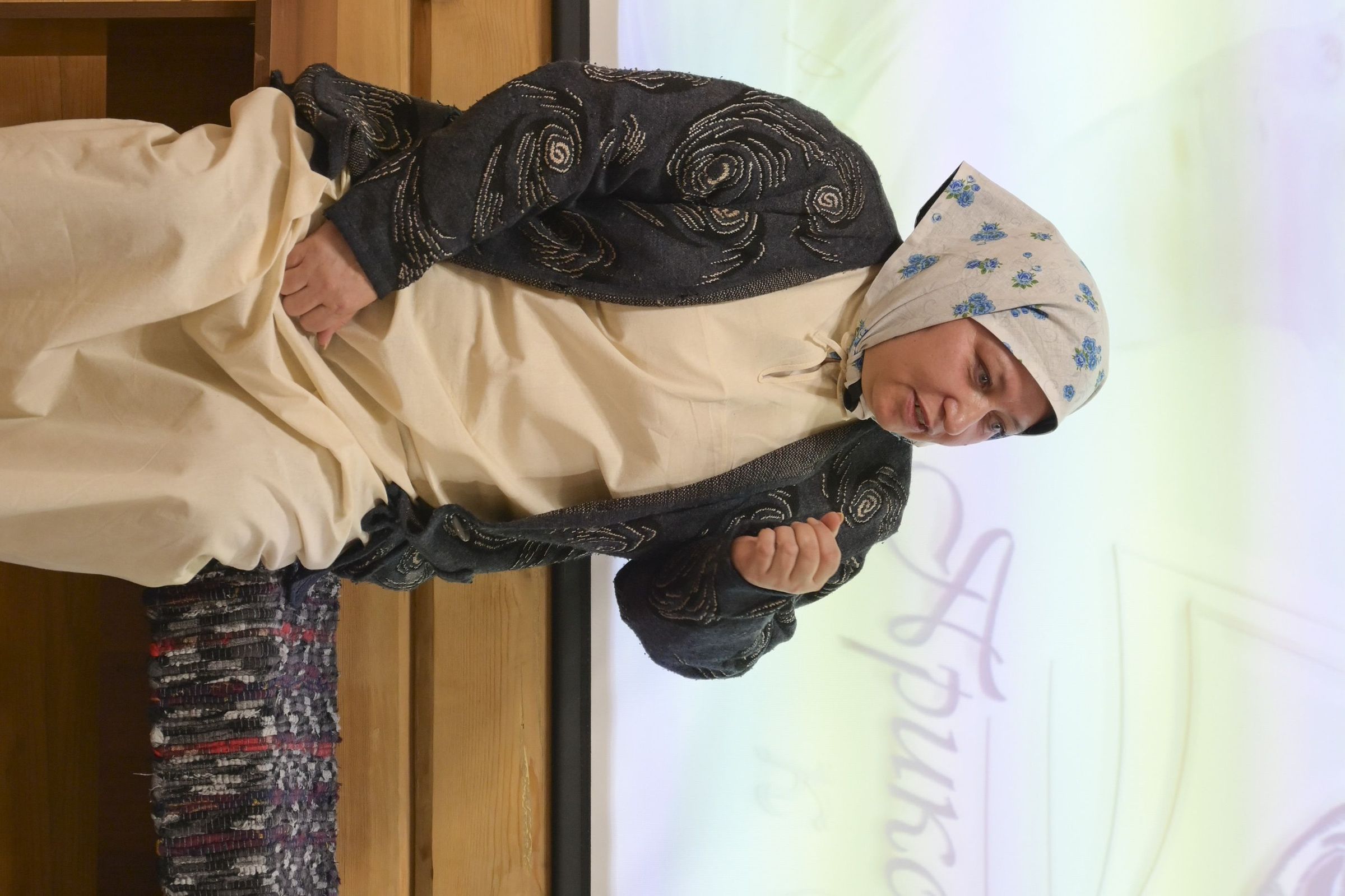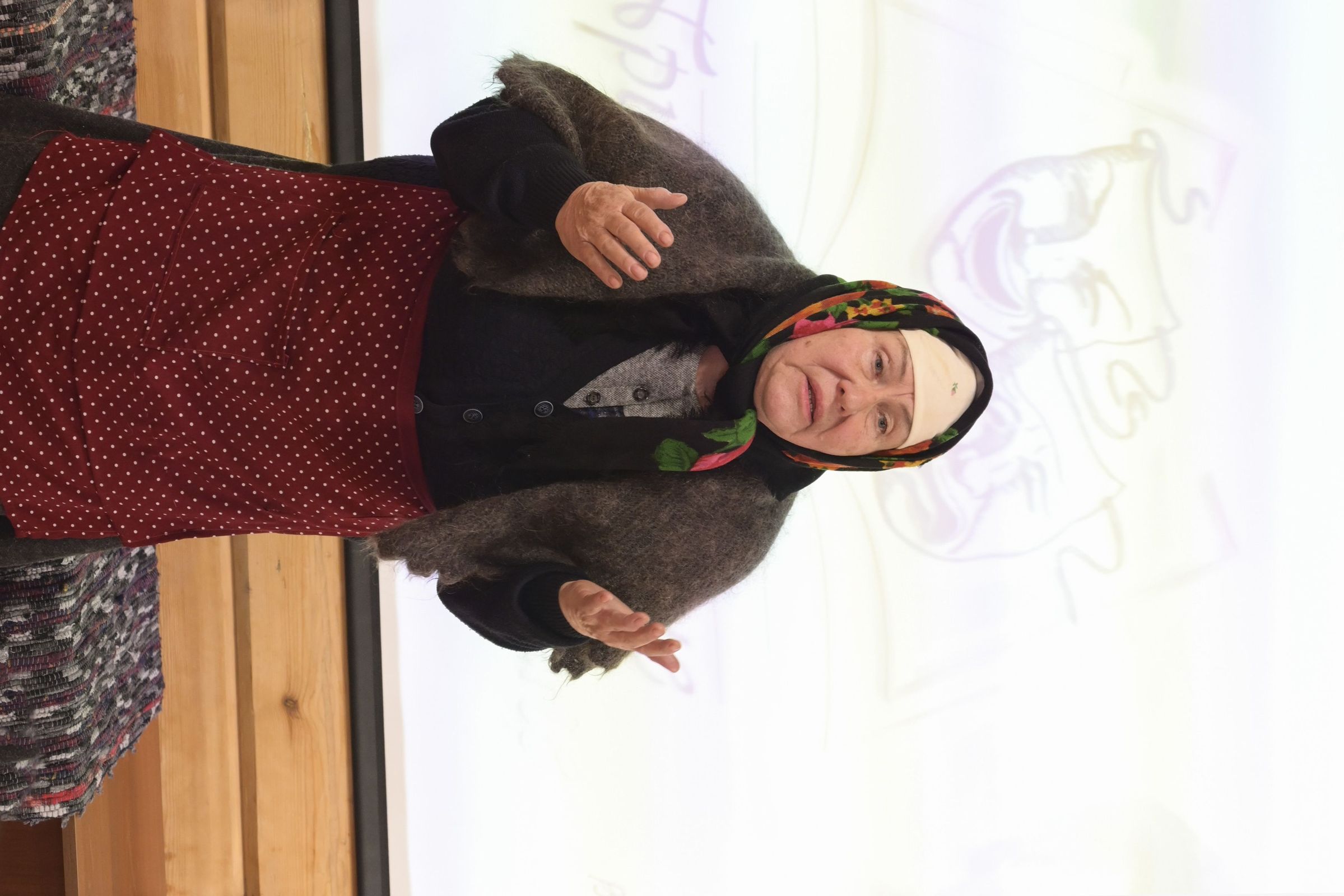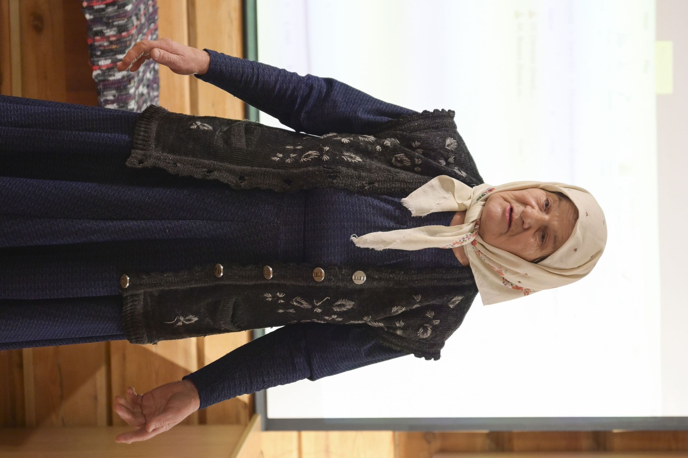 Валентина Воробьева, актриса народного театра «Современник», п. Магистральный, Казачинско-Ленский район: «Я выбрала для фестиваля произведение «Последний срок». Мы в театре этот спектакль играем давно. Я исполняю роль старухи Анны. Сам Валентин Григорьевич Распутин наш спектакль смотрел, когда приезжал в поселок Магистральный. Он посмотрел нас и подарил мне свою книгу «Последний срок» с надписью: «Самой лучшей Анне». Я этим подарком очень дорожу. Я с бабушкой росла. И когда мы взяли произведение «Последний срок» в работу, я сразу вспомнила бабушку мою. И эта Анна будто вошла в меня. Я понимаю ее».