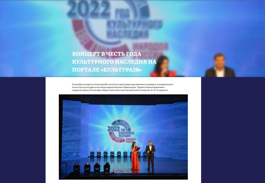 «Душа Сибири». Трансляция концерта, завершающего Год культурного наследия народов России, состоялась на портале "Культура38"