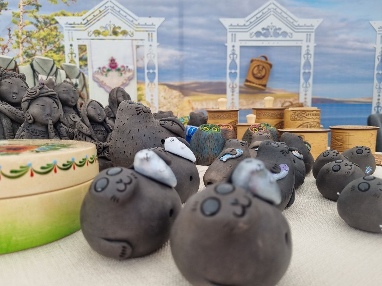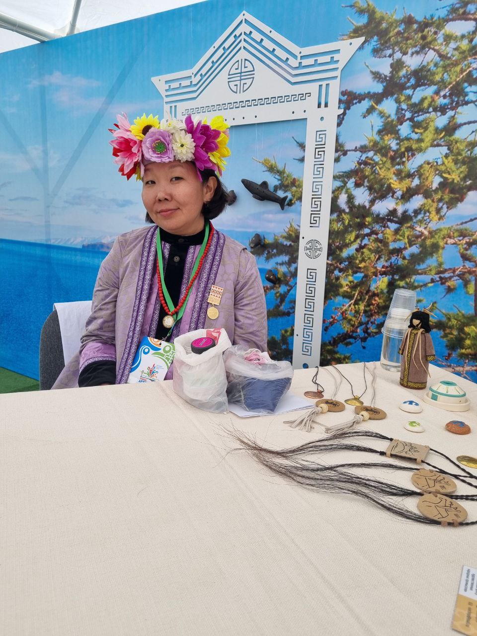 В составе делегации Приангарья народные мастера Иркутской области, вокалистка Ольга Кустова и народный фольклорный ансамбль «Оберег» Иркутского областного Дома народного творчества. В павильоне нашего региона представлены основные виды народных ремесел: вышивка (Иркутская гладь), керамика, художественная роспись (Илимская роспись), береста, народная кукла.