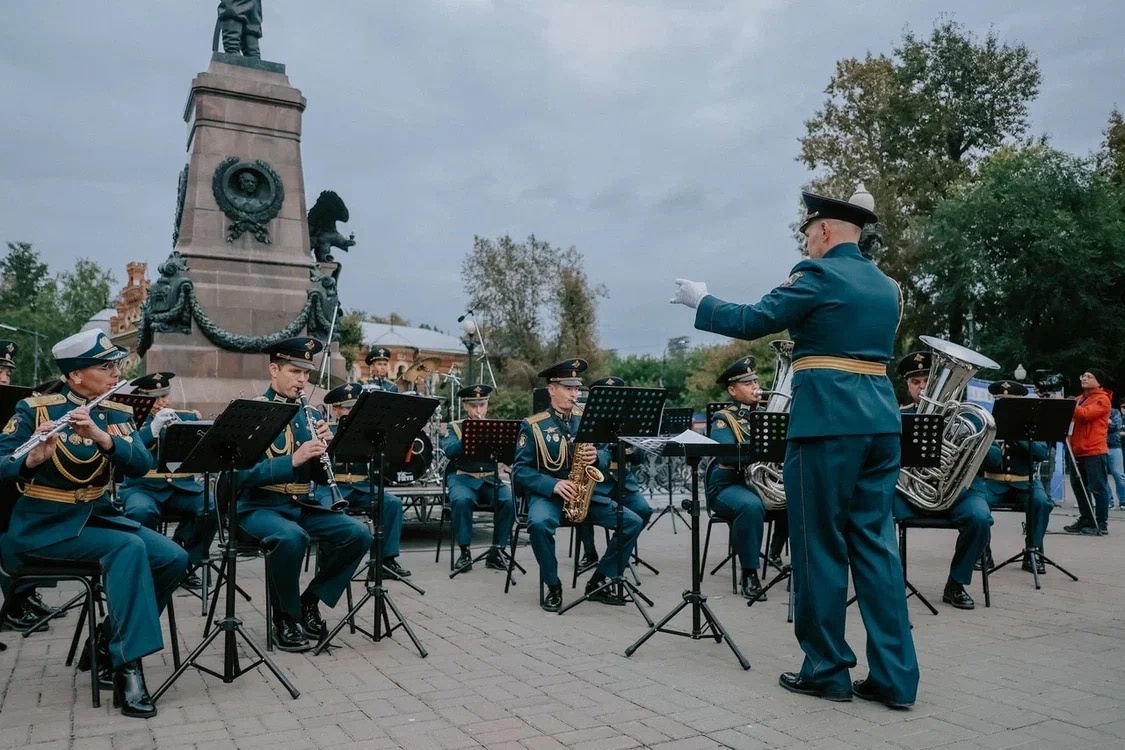 У памятника Александру III выступили военные духовые оркестры Российской Федерации.
