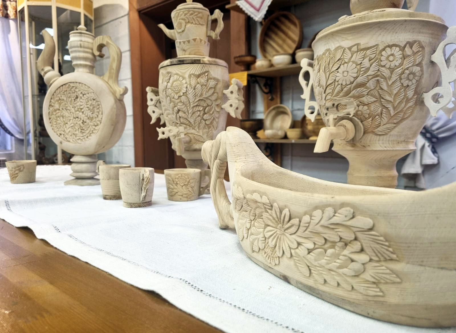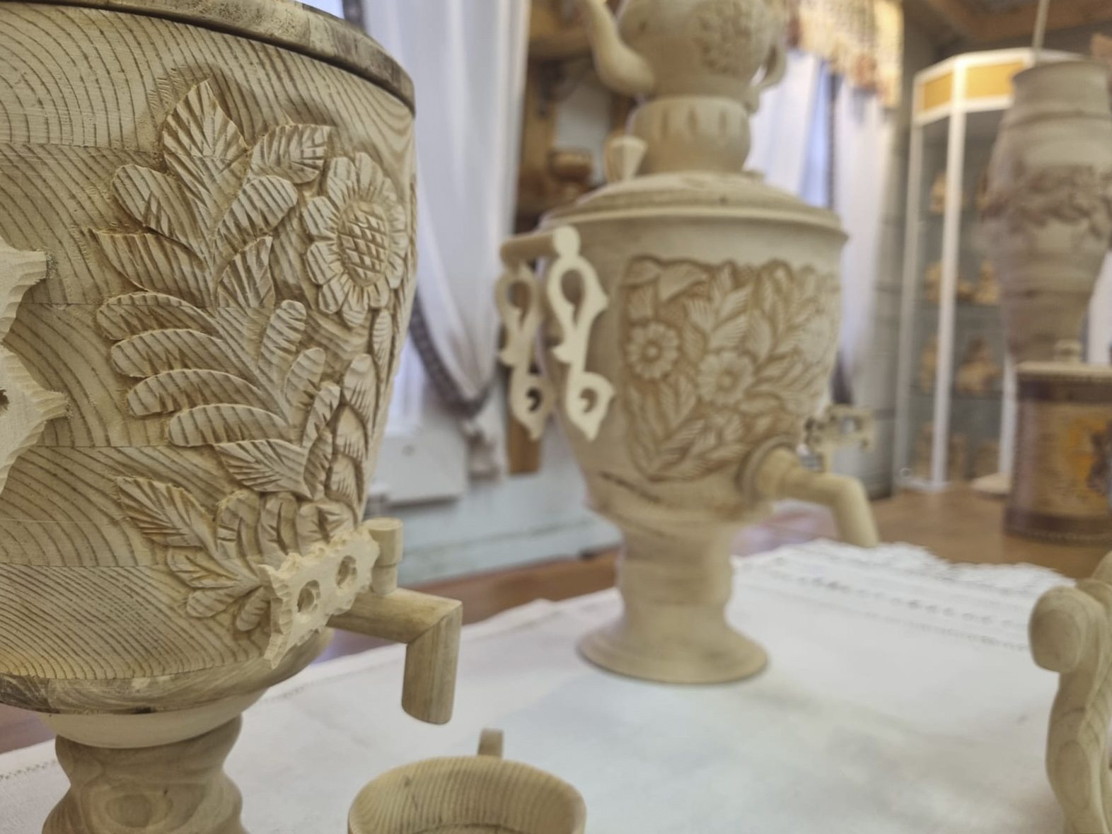 На выставке представлены изделия из сосны, кедра, лиственницы, таких производных как кап, сувель и береста в различной обработке: резьба, точение, мозаика, роспись, плетение. Разделочные доски, туеса и деревянные резные самовары, миски и чашечки, плетеные сумочки и короба из берестяной ленты. Рядом – традиционные деревянные игрушки. А запах! Вы когда-нибудь слышали, как пахнет кедр? А если изделие из кедра или сосны пропитать горячим растительным маслом для возможности использовать в быту и надёжности.