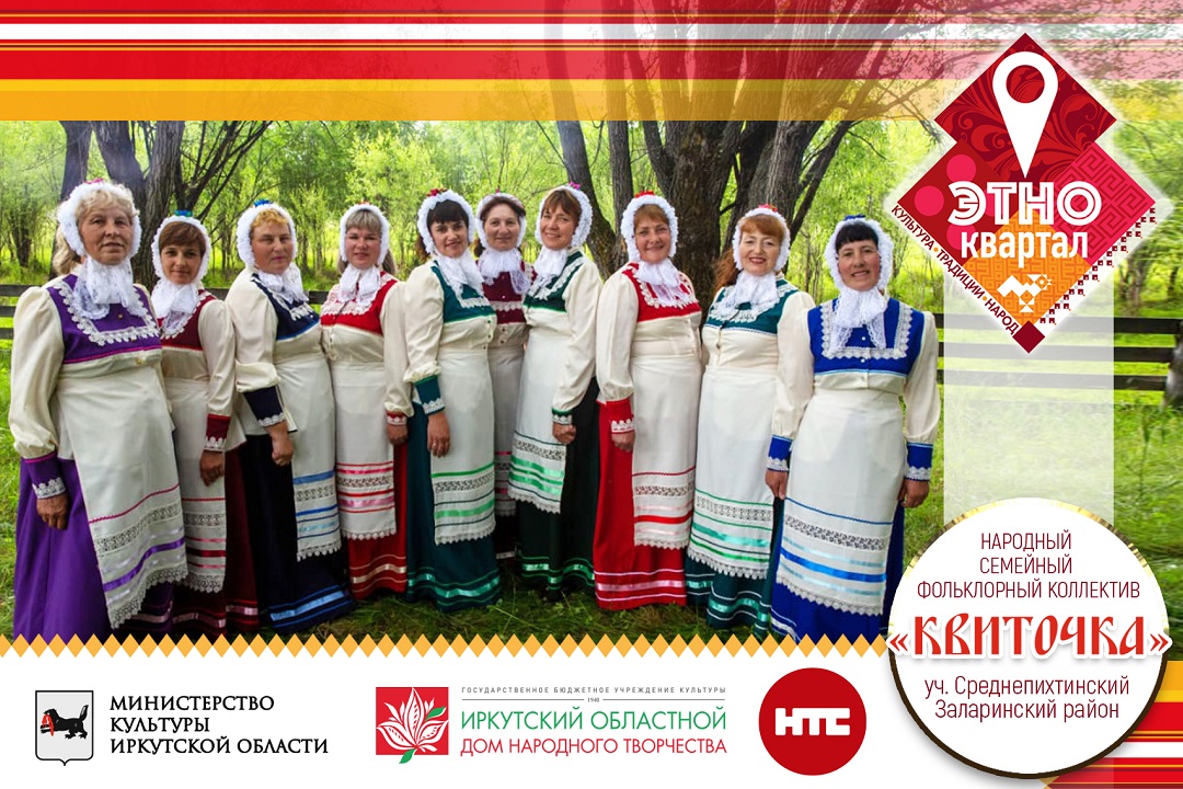 С народной культурой голендров – жителей Заларинского района Иркутской области – познакомим в "ЭТНОКВАРТАЛЕ"! Гостями культурно-просветительского проекта Иркутского областного Дома народного творчества на телеканале НТС стал народный семейный фольклорный коллектив «Квиточка». По этому случаю артистам-любителям в Средне-Пихтинском Доме Досуга даже новые сценические костюмы сшили! Первый же показ состоится в телевизионном эфире.