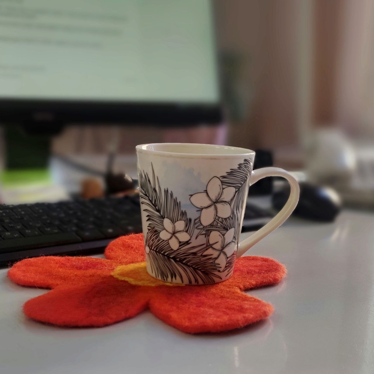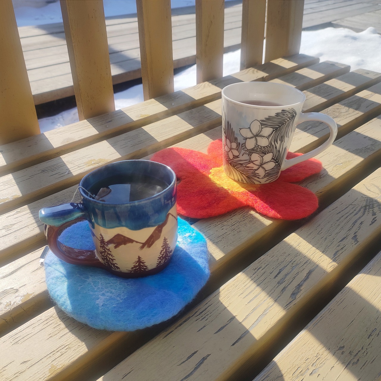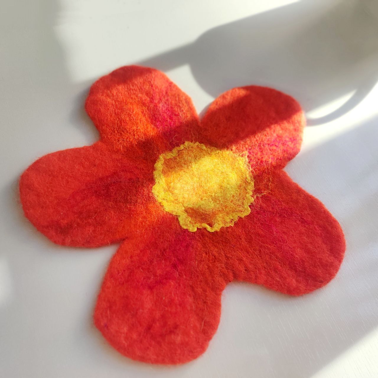 Цветы из войлока, а может нежная абстракция. В подарок маме или бабушке своими руками предлагаем создать оригинальную подставку под кружку. Войлочный коврик сохранит тепло напитка и подарит тепло Вашей души! Это не сложно. Будет интересно взрослым и детям от 7 лет. Сам мастер-класс тоже может стать отличным подарком.