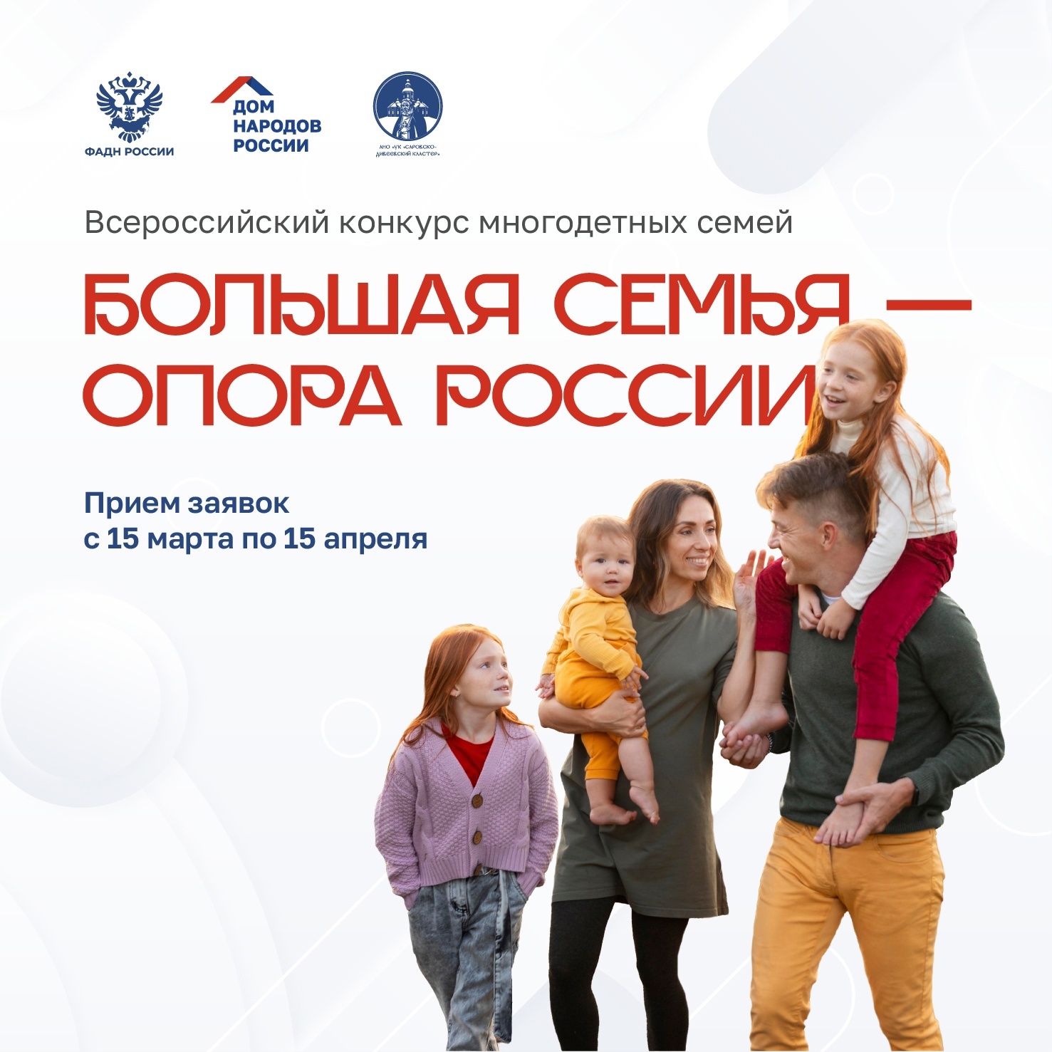 Продолжается прием заявок от многодетных семей на всероссийский конкурс эссе, фоторабот и видеороликов о семейных ценностях. До 15 апреля необходимо заполнить форму на официальной странице конкурса.