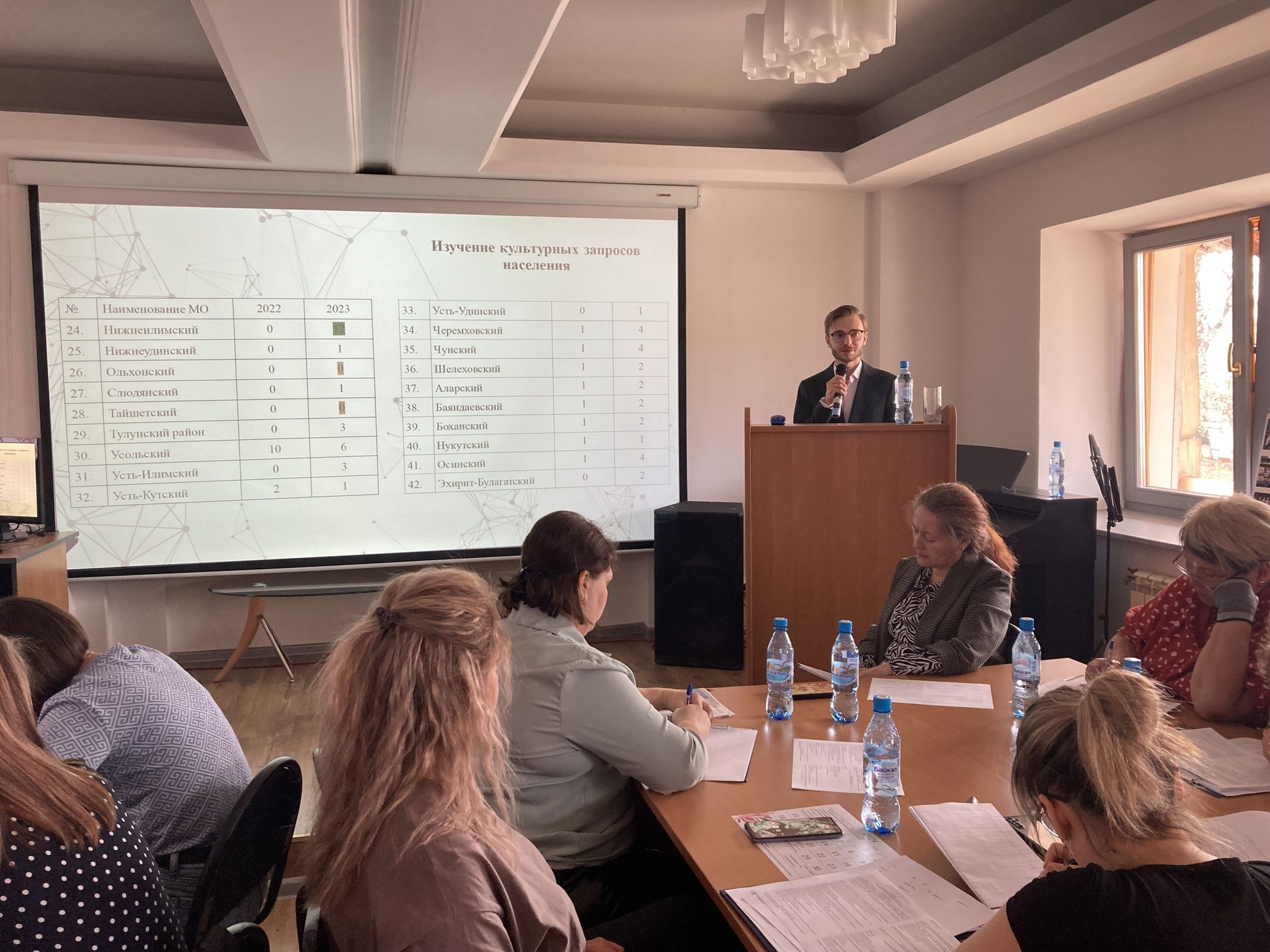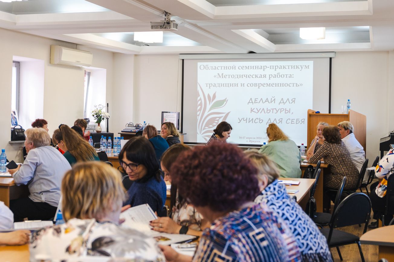 70 человек – директора, методисты и режиссёры из 54 культурно-досуговых учреждений Приангарья – приняли участие в двухдневном областном семинаре-практикуме «Методическая работа: традиции и современность». Его организовал отдел анализа и методики клубной работы Иркутского областного Дома народного творчества.