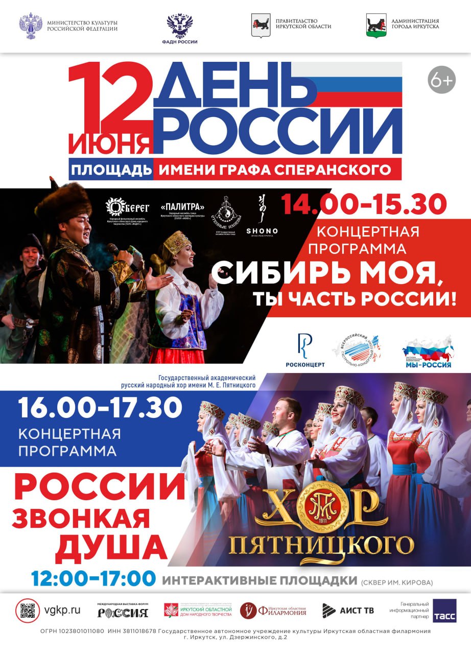 Организаторы праздника, посвящённого Дню России: Иркутский областной Дом народного творчества, Иркутская областная филармония при поддержке Федерального агентства по делам национальностей, Правительства Иркутской области и администрации г. Иркутска.
