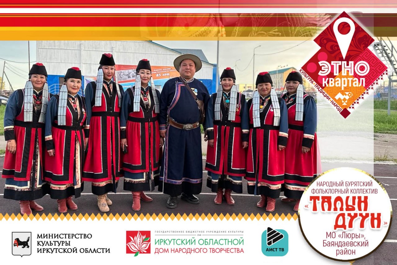 Коллектив «Талын дуун» работает в жанре фольклора, ставя перед собой цель популяризировать бурятскую культуру среди населения, сохранять и передавать следующим поколениям лучшие образцы бурятского фольклора, традиций и языка. Та же философия и у культурно-просветительского проекта Иркутского областного Дома народного творчества «ЭТНОКВАРТАЛ». В регионе он реализуется с 2020 года с использованием различных форм масс-медиа. Проект популяризирует традиции народов региона, самобытное песенное, устное творчество и празднично-обрядовую культуру. Участники: профессиональные, любительские творческие коллективы муниципальных образований Иркутской области. В 2024 году телеверсия проекта выходит на региональном телеканале АИСТ и на интернет-ресурсах ИОДНТ. Кроме того, организуются фольклорные концертные программы для зрителей – посетителей отдела «Ремесленное подворье».