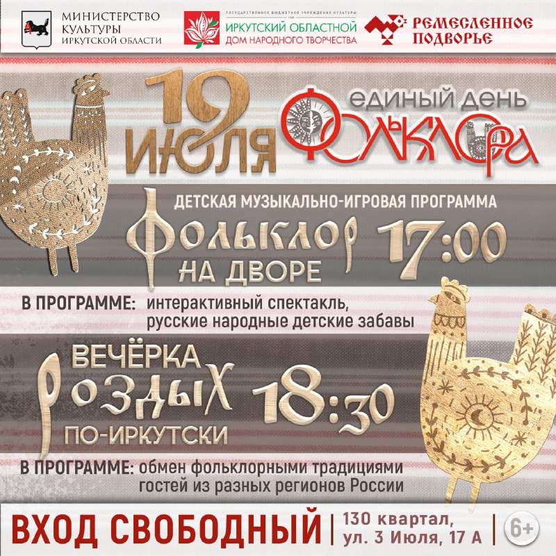 Приглашаем отметить Единый День фольклора вместе с Иркутским областным Домом народного творчества 19 июля.