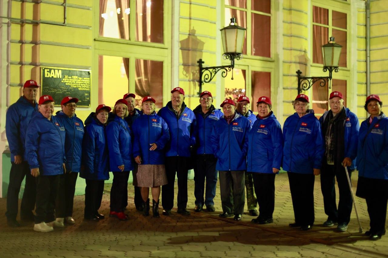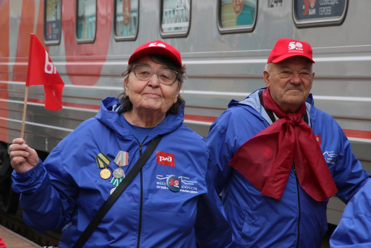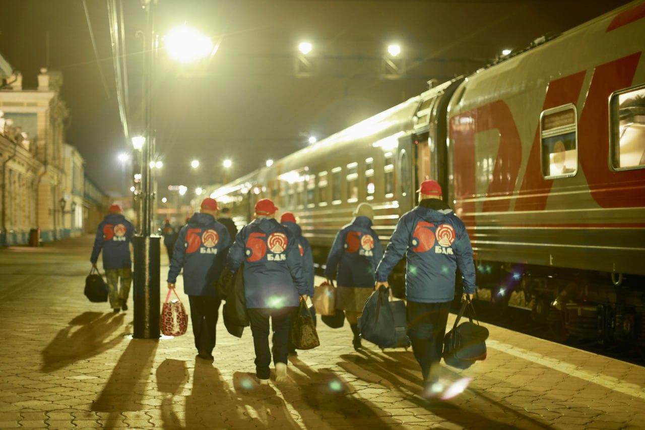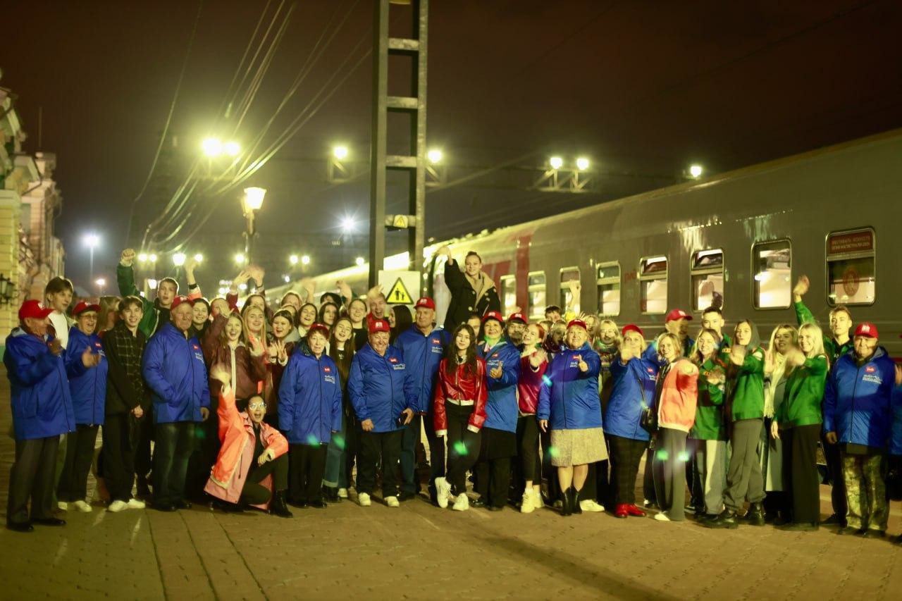 Пассажирами состава были 90 человек. Это ветераны-строители Байкало-Амурской Магистрали, ветераны комсомола и участники молодежных организаций и творческих коллективов Иркутского областного колледжа культуры и Иркутского государственного университета путей сообщения. На станциях Тайшет, Братск, Лена, Звёздный, Магистральный и Улькан, которые являются опорными территориями Иркутской области, они проводили концерты, митинги, экскурсии, праздничные программы. Их зрителями и участниками стали 2600 человек.