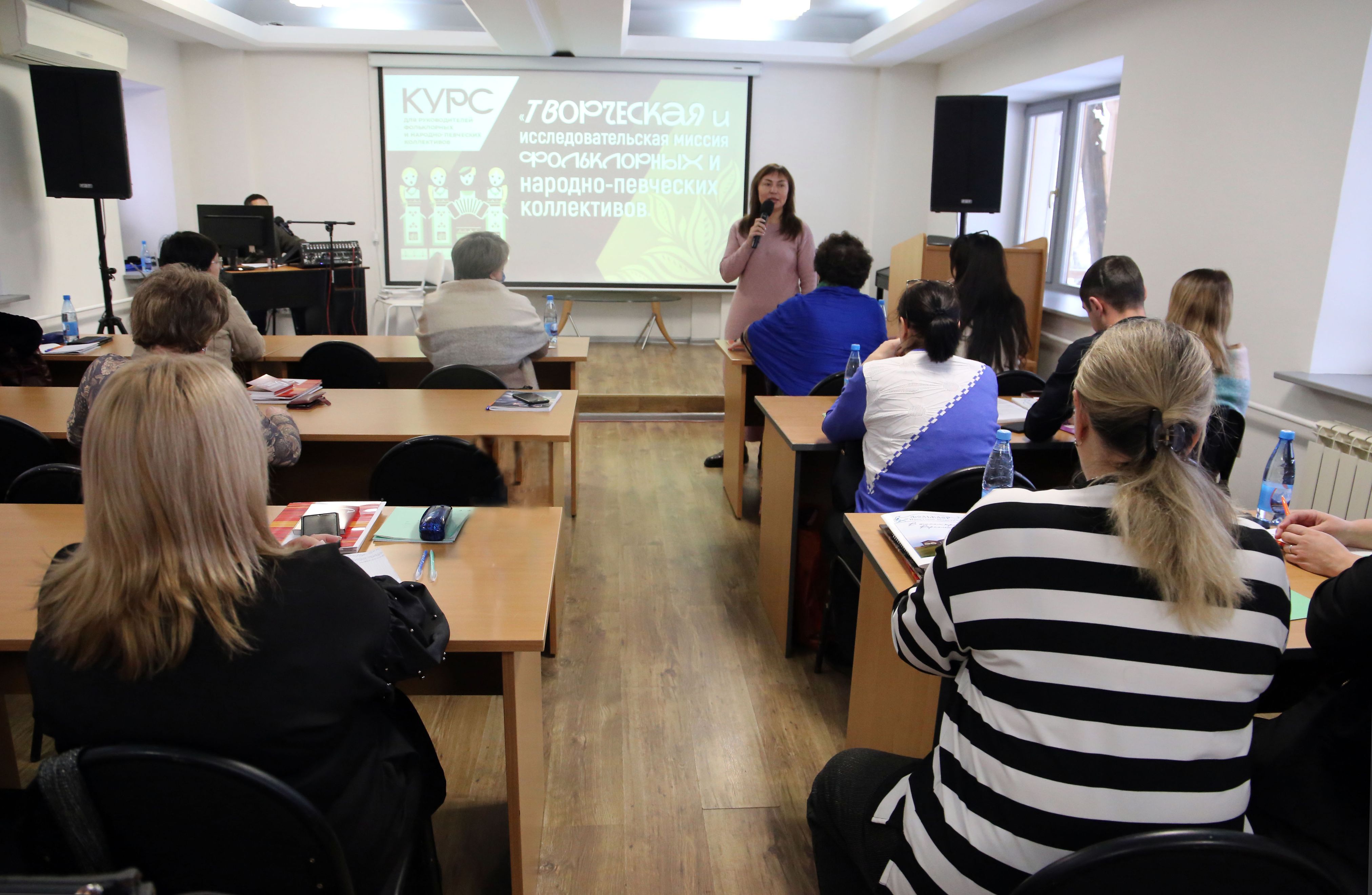 В Иркутском областном Доме народного творчества на курсы повышения квалификации собрались руководители фольклорных и народно-певческих коллективов, представляющие культурно-досуговые учреждения и детские школы искусств Приангарья, а также любители народного жанра. Всего 38 слушателей из 22 муниципальных образований региона.