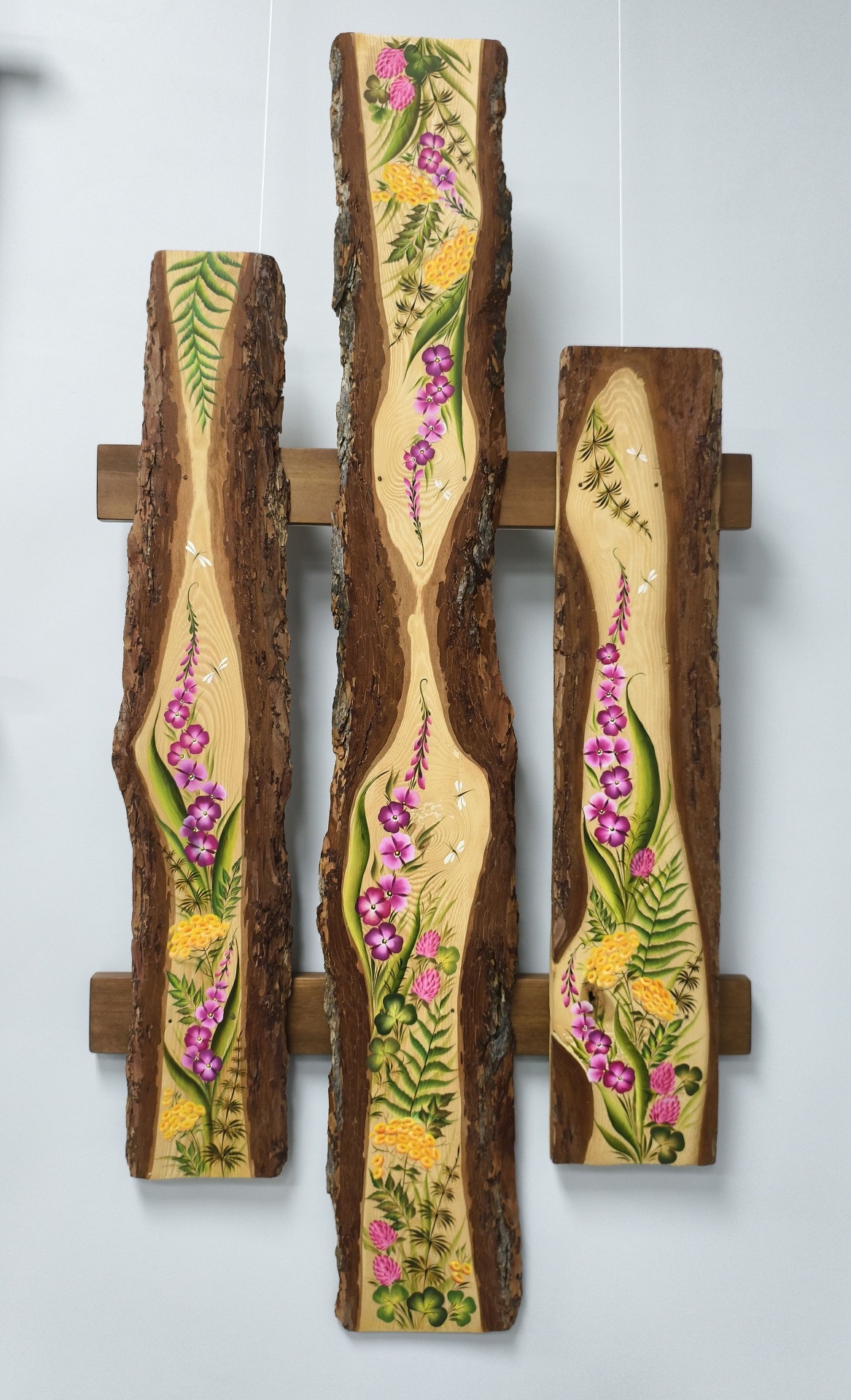 «Каждое изделие – это не просто предмет, а возможность прикоснуться к природе северного края, окунуться в буйство красок, ощутить ароматы цветочных полей и лёгкость полёта бабочек, – делится куратор выставки Ольга Ращенко, ведущий специалист по жанрам творчества ИОДНТ. – Почерк и стиль мастеров уникален: от выбора материалов и форм до авторских вариаций композиции и цвета. Центральные мотивы – природа сибирской тайги: глухари, тетерева, снегири и синички, грибы и ягоды, иван-чай, полевая герань, ирисы, донник и клевер. Материалы для росписи также выбирают местные, таёжные: сосна, кедр, лиственница и береста»