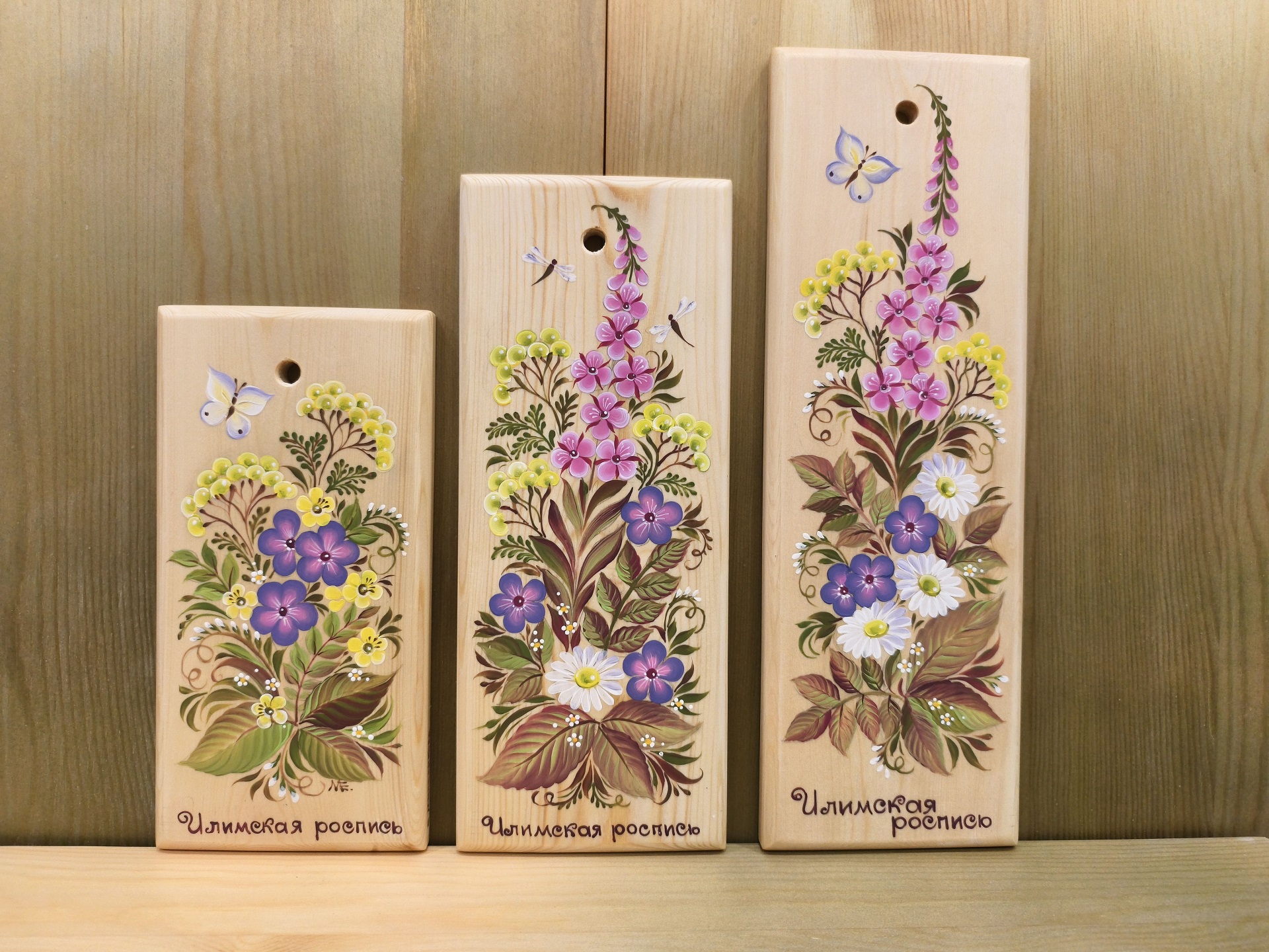 Илимская роспись, ставшая в 2024 году объектом нематериального этнокультурного достояния региона, зародилась в 1990-х годах в стенах Школы искусств № 2 им. Т. Г. Сафиулиной в Усть-Илимске. Техника развивалась на основе урало-сибирской домовой и тагильской маховой росписей. В её основе – техника двойного мазка, когда на плоскую кисть одновременно набирают краски двух цветов. Сдержанные оттенки, характерные для сибирского леса, дополняют яркие акценты жарков, ромашек, шиповника и одуванчиков.