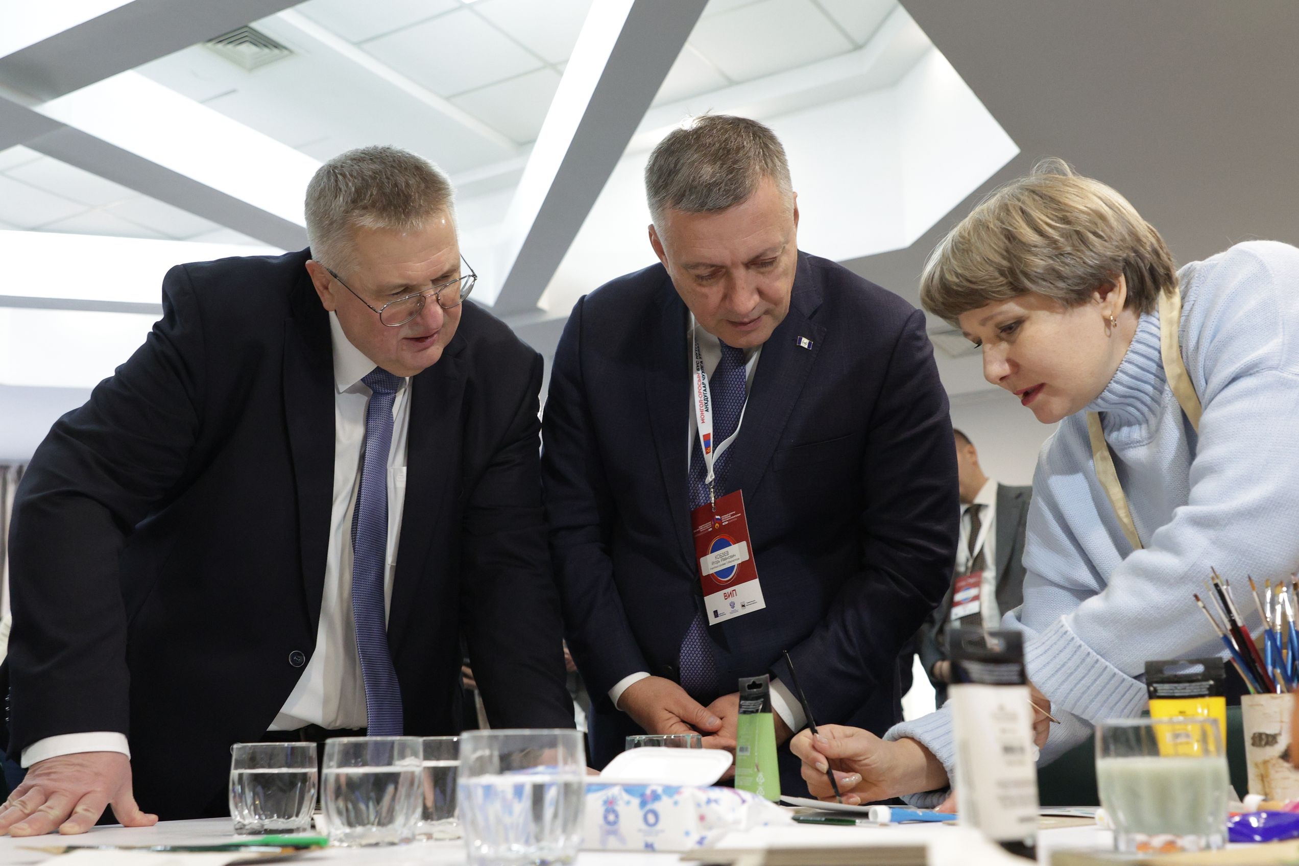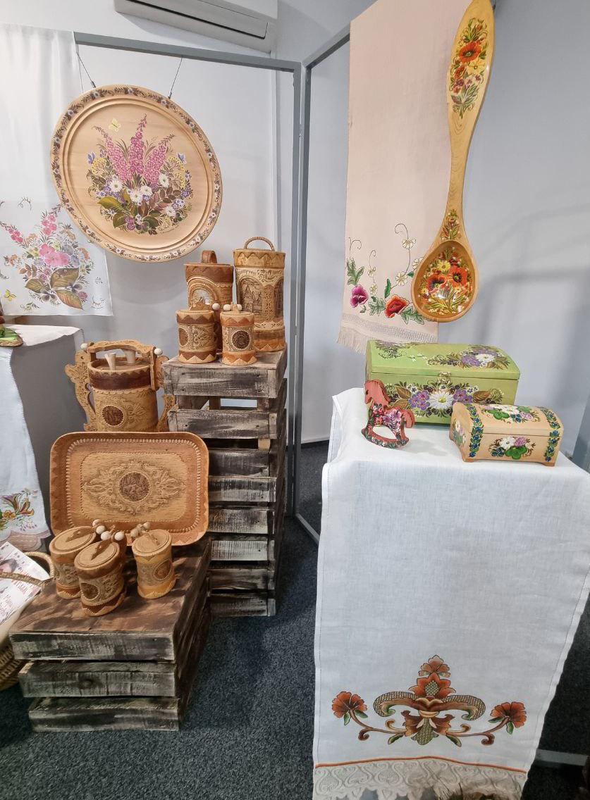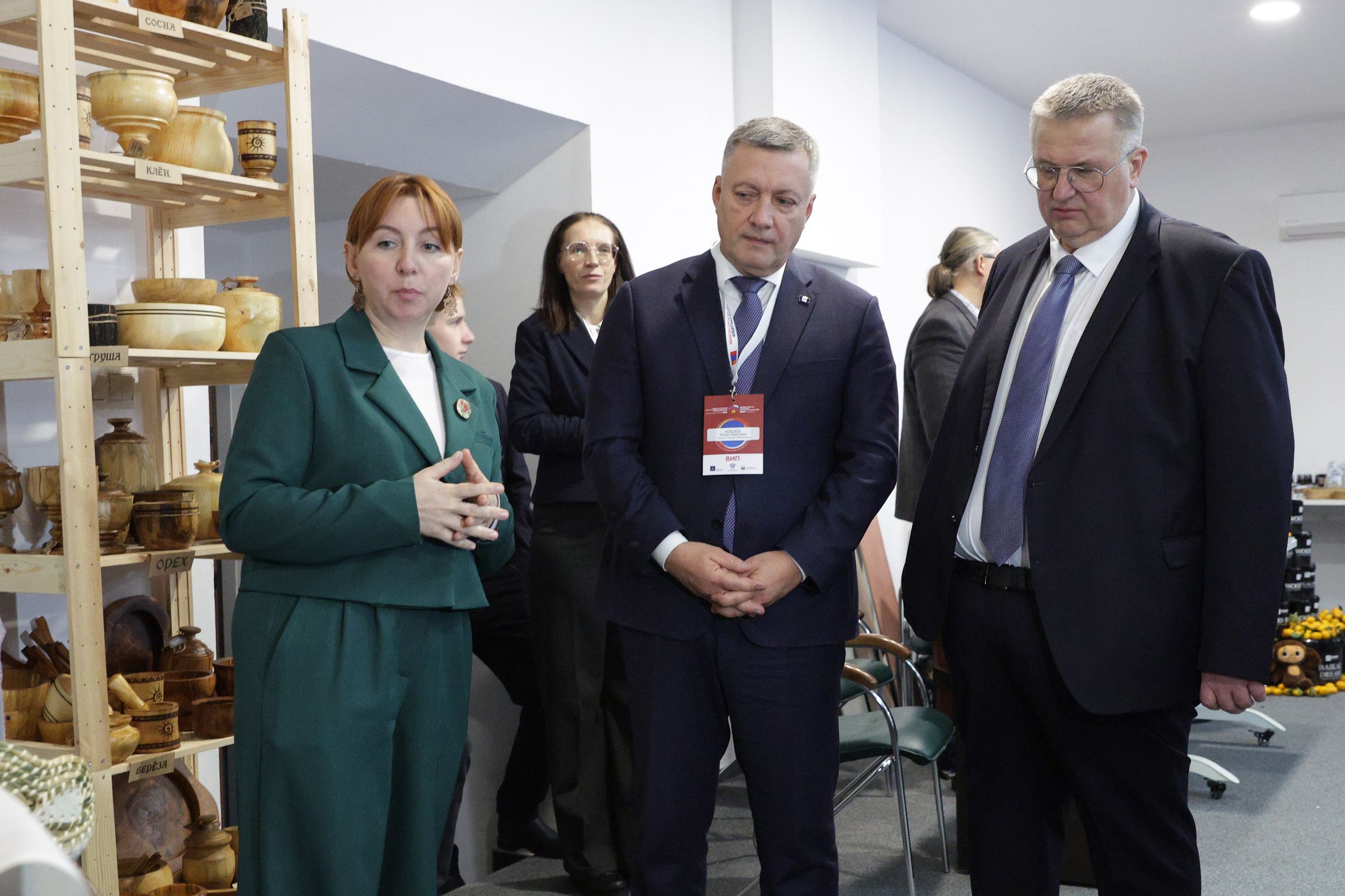 Гости познакомились с работой народных мастеров и ремесленными брендами Иркутской области. Отдельные образцы смогли приобрести на память. Береста, керамика, точёная посуда из дерева. В центре экспозиции – образцы нематериального этнокультурного наследия региона: авторские полотенца Валентины Щеновой и Нины Медведок, расшитые иркутской гладью; предметы интерьера, созданные тулунчанкой Еленой Лисицкой с использованием спирального травоплетения; творческие работы основоположника художественной росписи по дереву «Илимская роспись» Елены Михеенковой и её учеников.