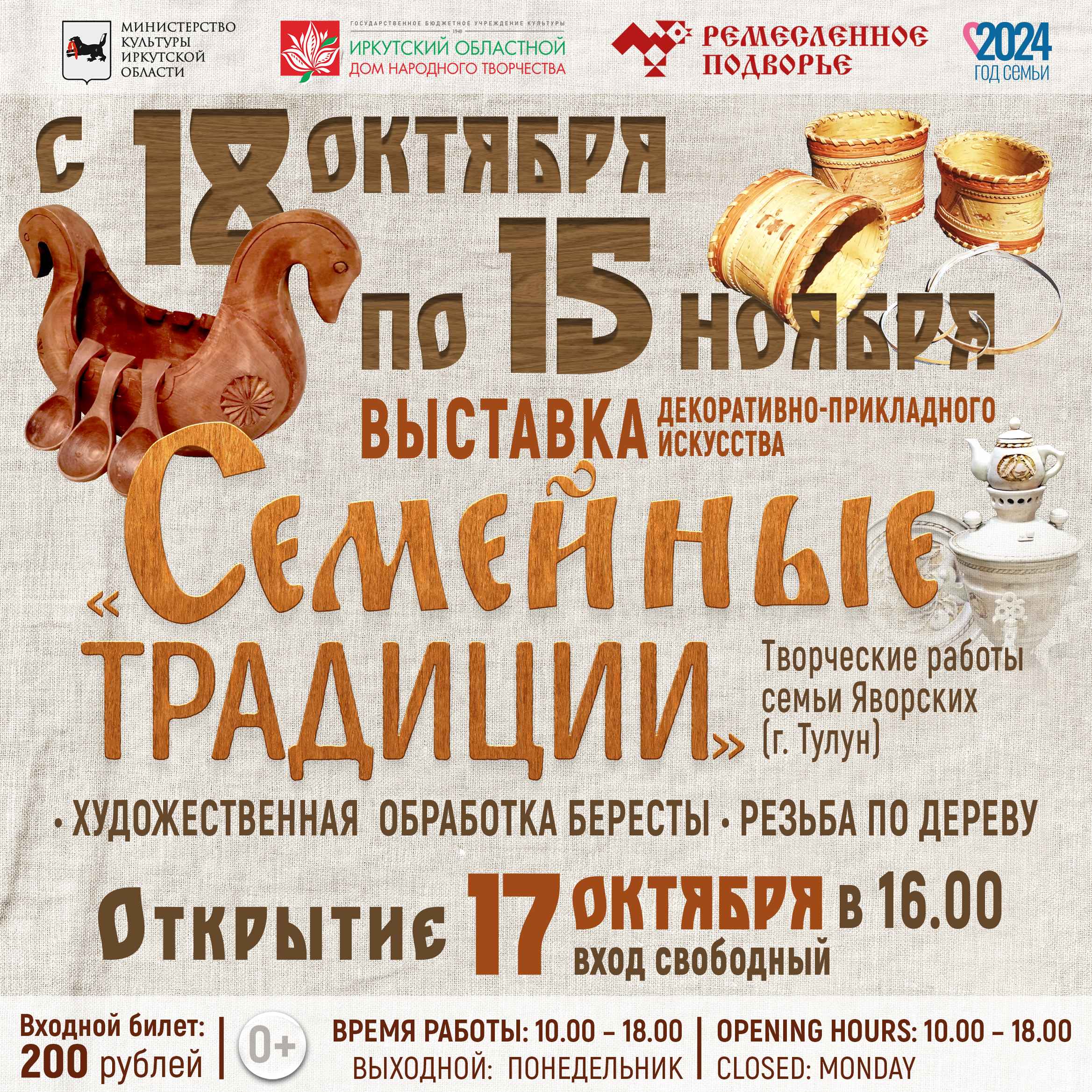 Атмосферу праздника в Иркутске традиционно создавало пение хоровое и сольное, колокольный перезвон, нежные танцевальные номера и оркестровая музыка русских народных инструментов. От жары укрывали палатки с увлекательными мастер-классами: плетение макраме, набойка по ткани, гончарное дело, роспись ароматных пряников.