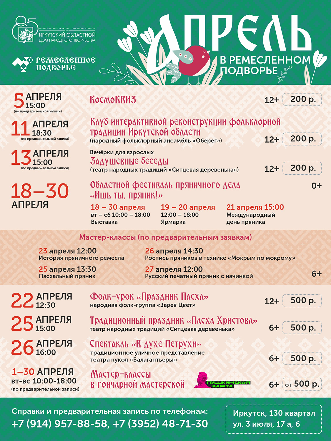 14 сентября в 15:00 Иркутский областной Дом народного творчества зовет в Ремесленное подворье проводить лето и встретить осень шумно, весело и по всем канонам на познавательно-игровой программе «Семён-летопроводец», посвященной народному празднику «Осени́ны».