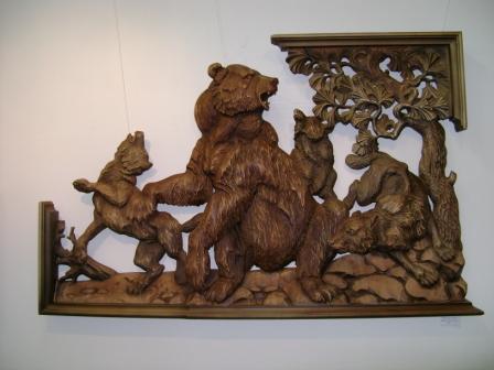 Одним из достижений мастера можно считать пополнение школьного выставочного и методического фондов резными изделиями, изготовленными руками его учеников: разнообразные настенные панно, деревянные скульптуры, декоративные комплекты мебели и кухонной утвари, выполненные в различных техниках.