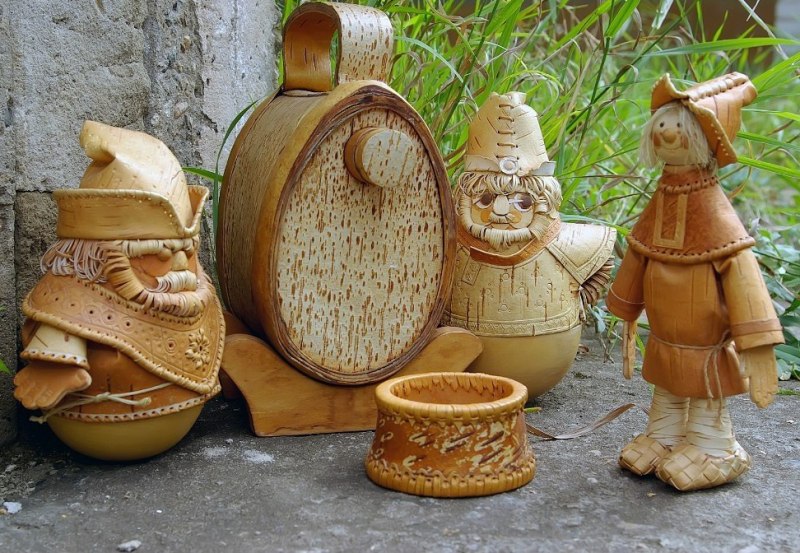 В коллекции мастера туеса, шкатулки, бижутерия с самоцветами, сумочки, лапти, детские погремушки многое другое. Особое место в творчестве Веры Ивановны занимает авторская кукла - игрушка из бересты, которая отличается разнообразием форм и высокой техникой исполнения – тиснение, плетение, и вышивка берестой.