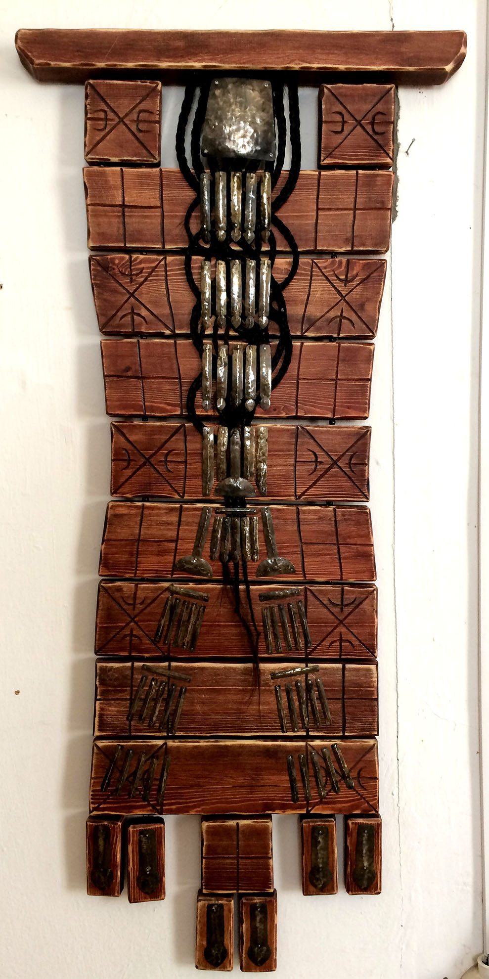 Декоративное панно Доспехи_ Металл, дерево, конский волос, бусы_ 2017