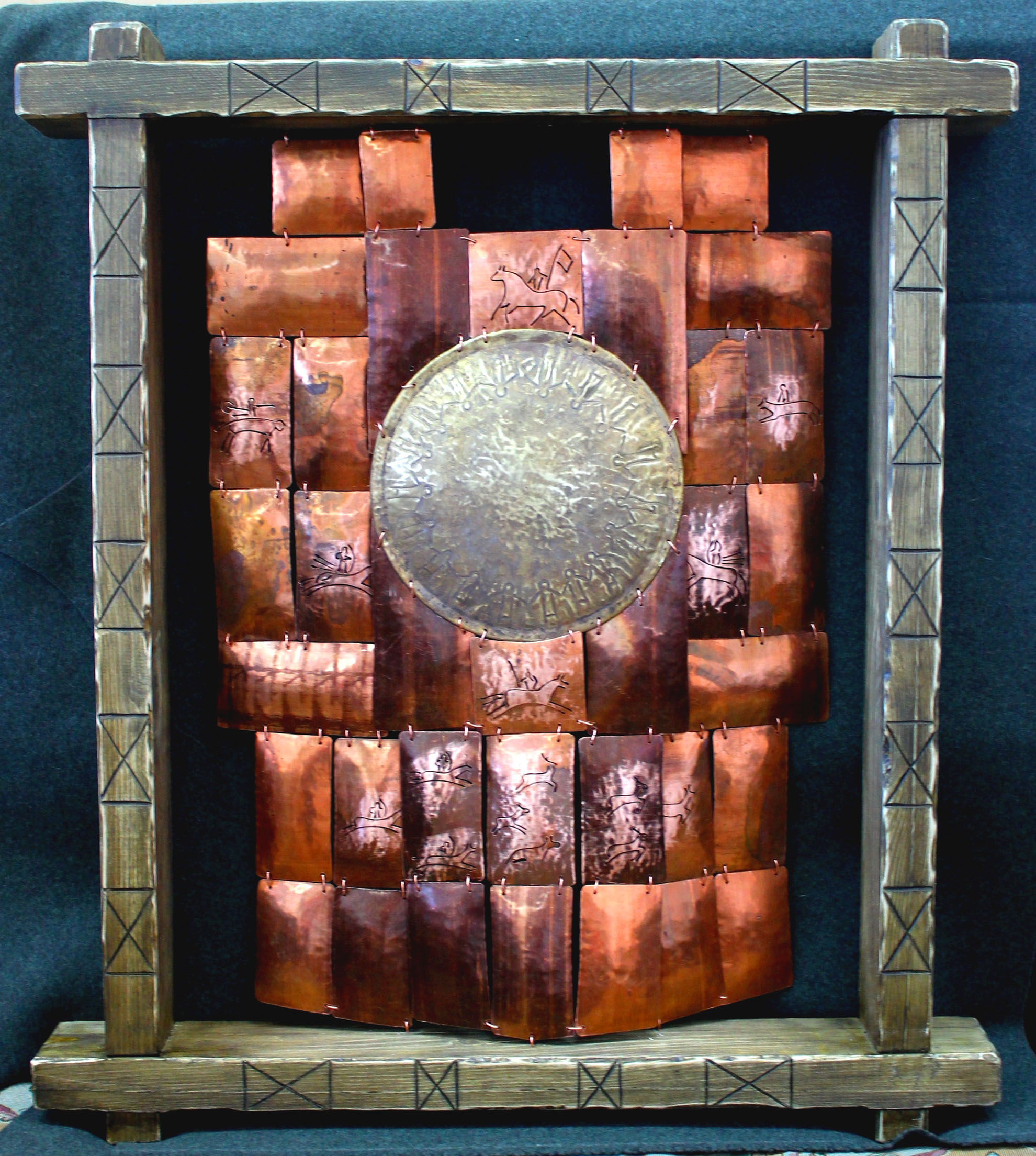Декоративное панно_ Украшение прошлого_ Металл, дерево, конский волос, бусы