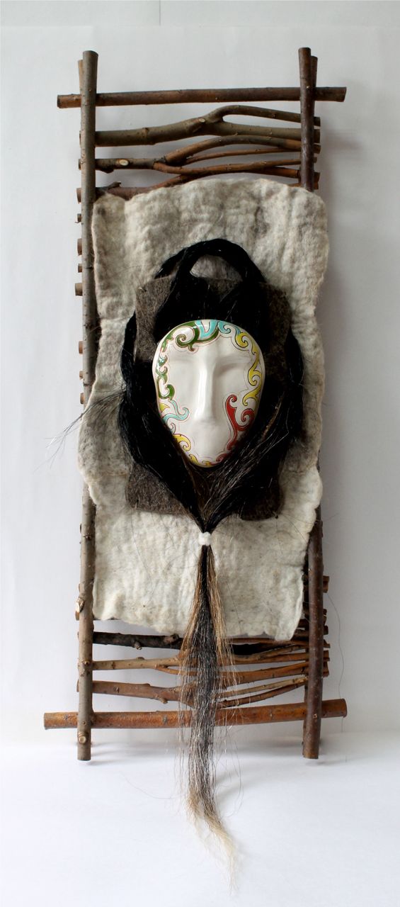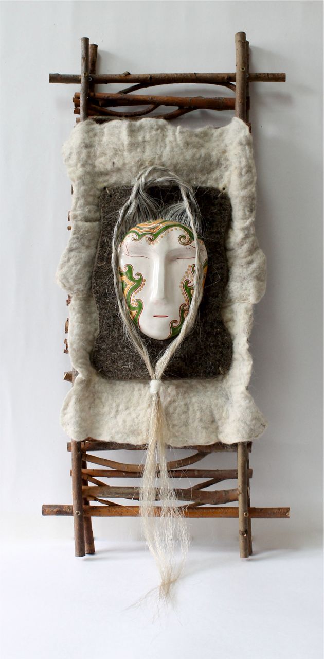 Декоративное панно Маски_ Ивовый прут войлок керамика. 2020. 50х30 (4)