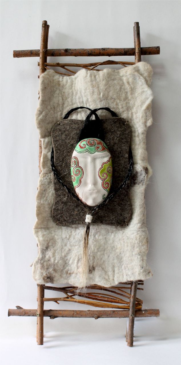Декоративное панно Маски_ Ивовый прут войлок керамика. 2020 50х30 (3)